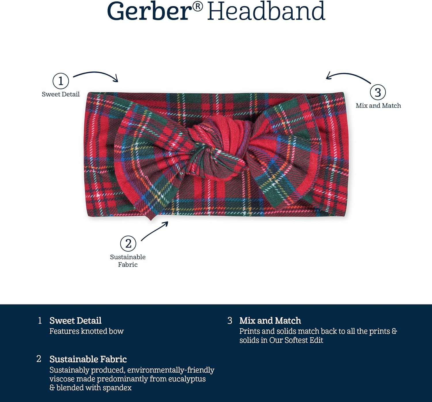 Gerber Baby Girls’ Buttery Soft Headband with Bow with Viscose Made from Eucalyptus(Plaid About You)