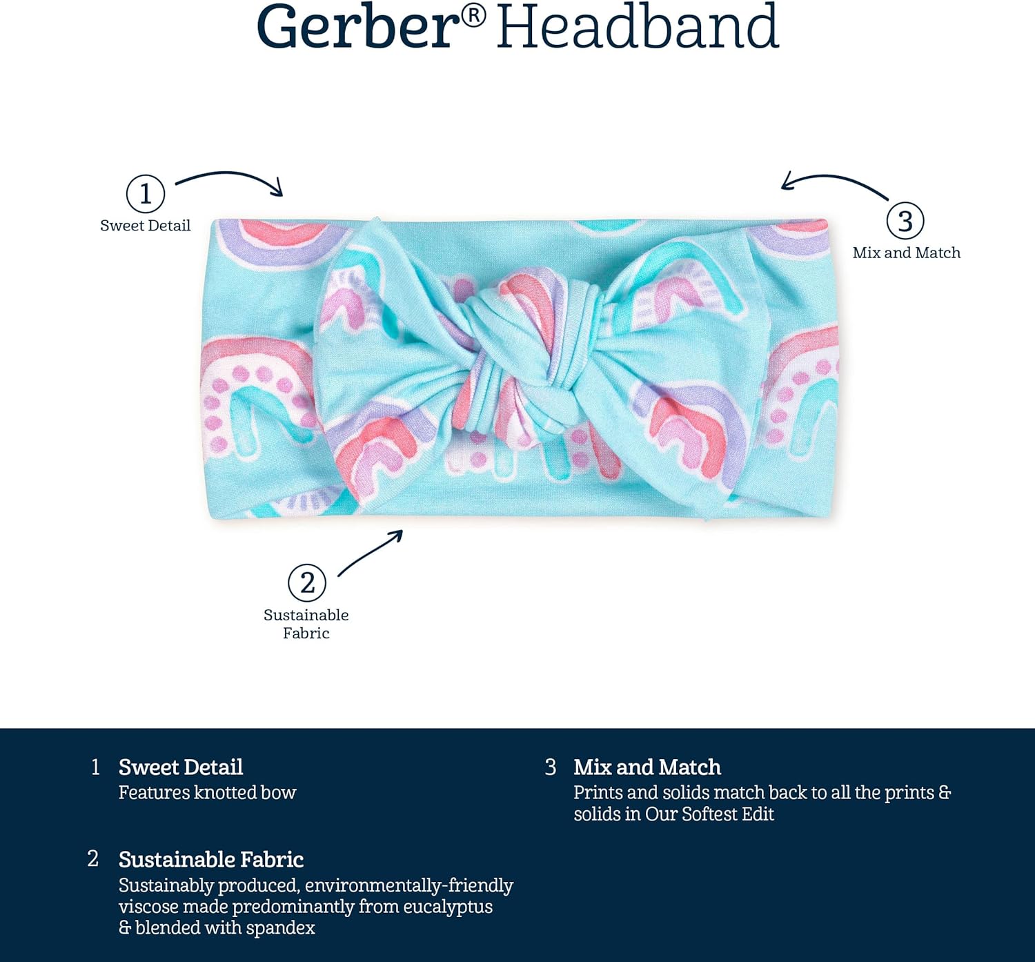Gerber Baby Girls’ Buttery Soft Headband with Bow with Viscose Made from Eucalyptus(Rainbow Sky)