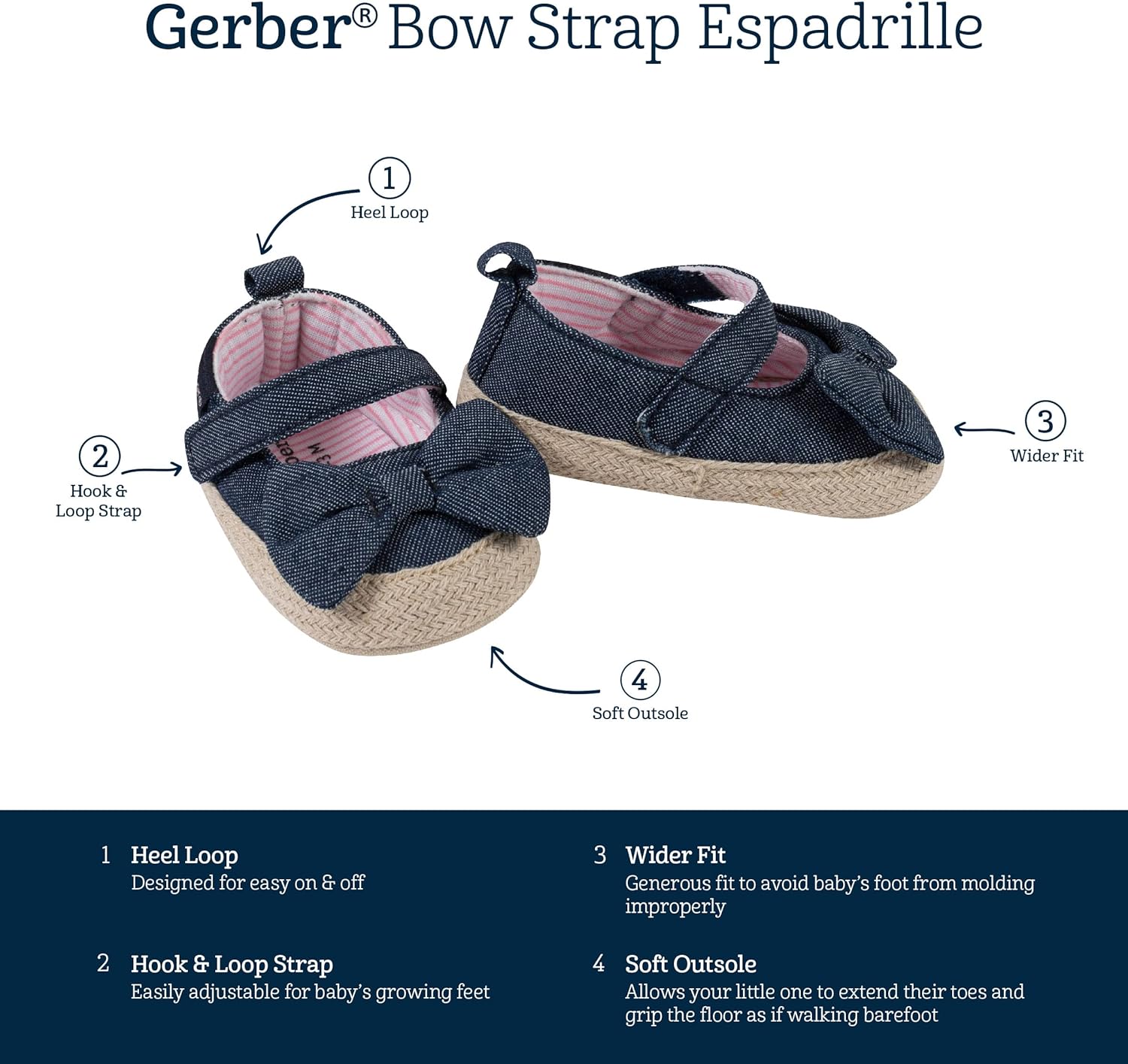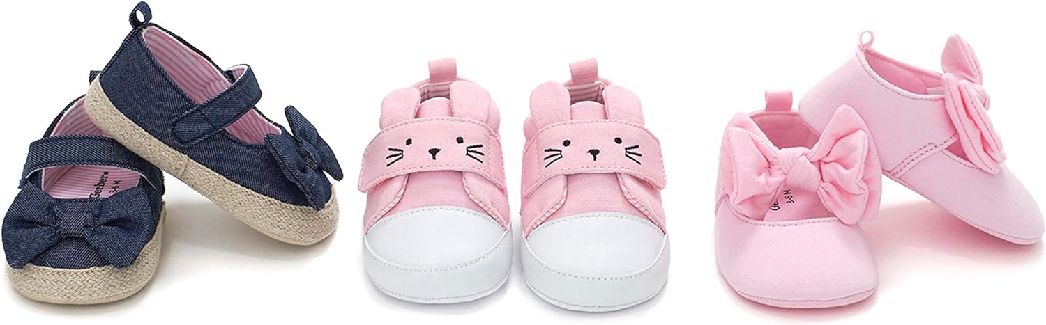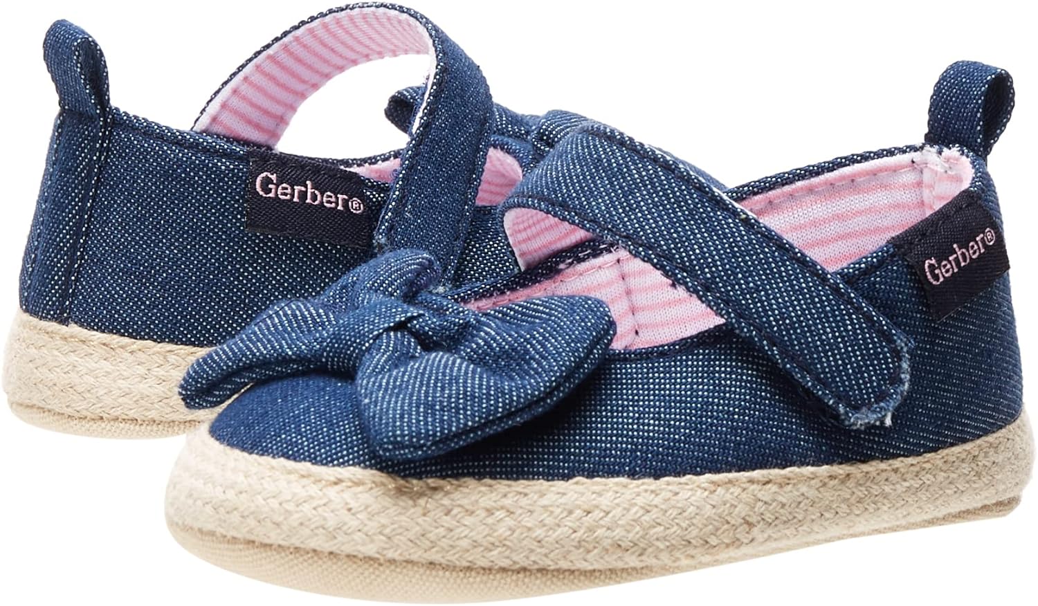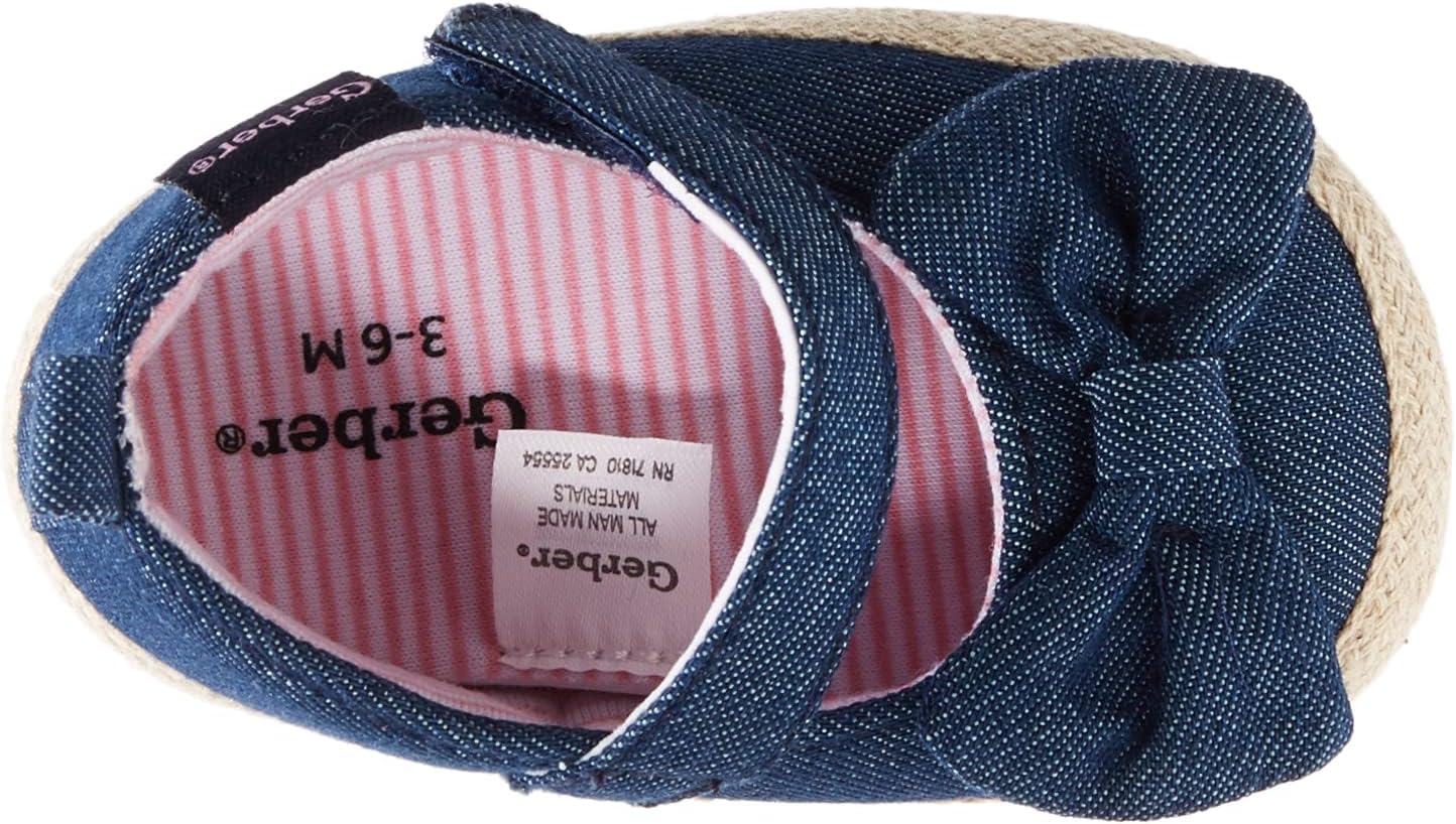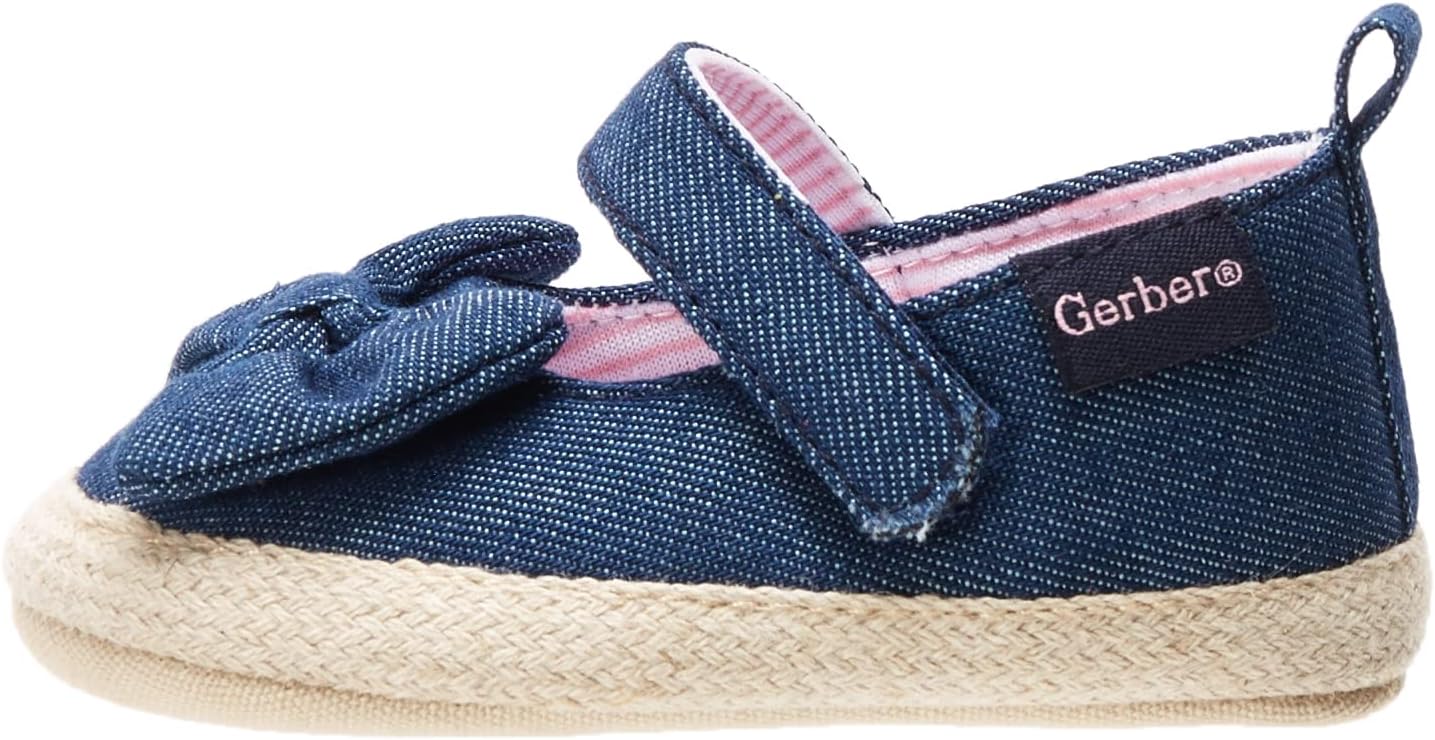 Gerber Baby-Girl’s Crib Shoes Newborn Infant Toddler Mary Jane(Chambray Bow)
