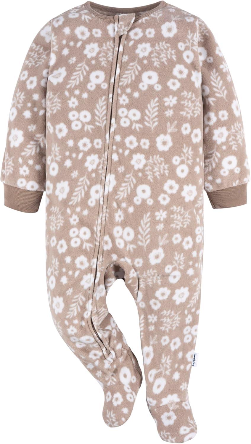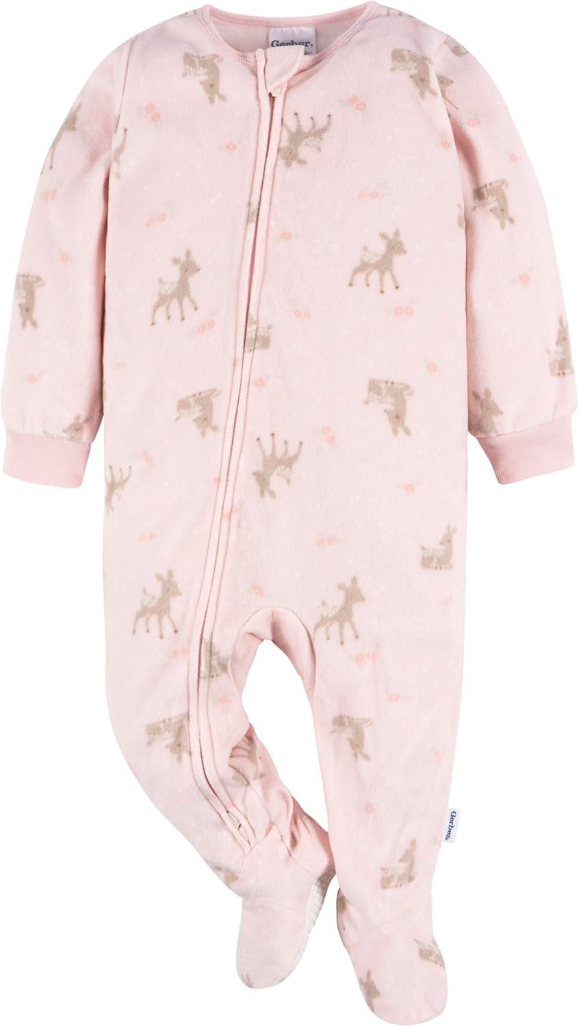 Gerber Baby Girls Flame Resistant Fleece Footed Pajamas 2-pack(Pink Brown Deer)