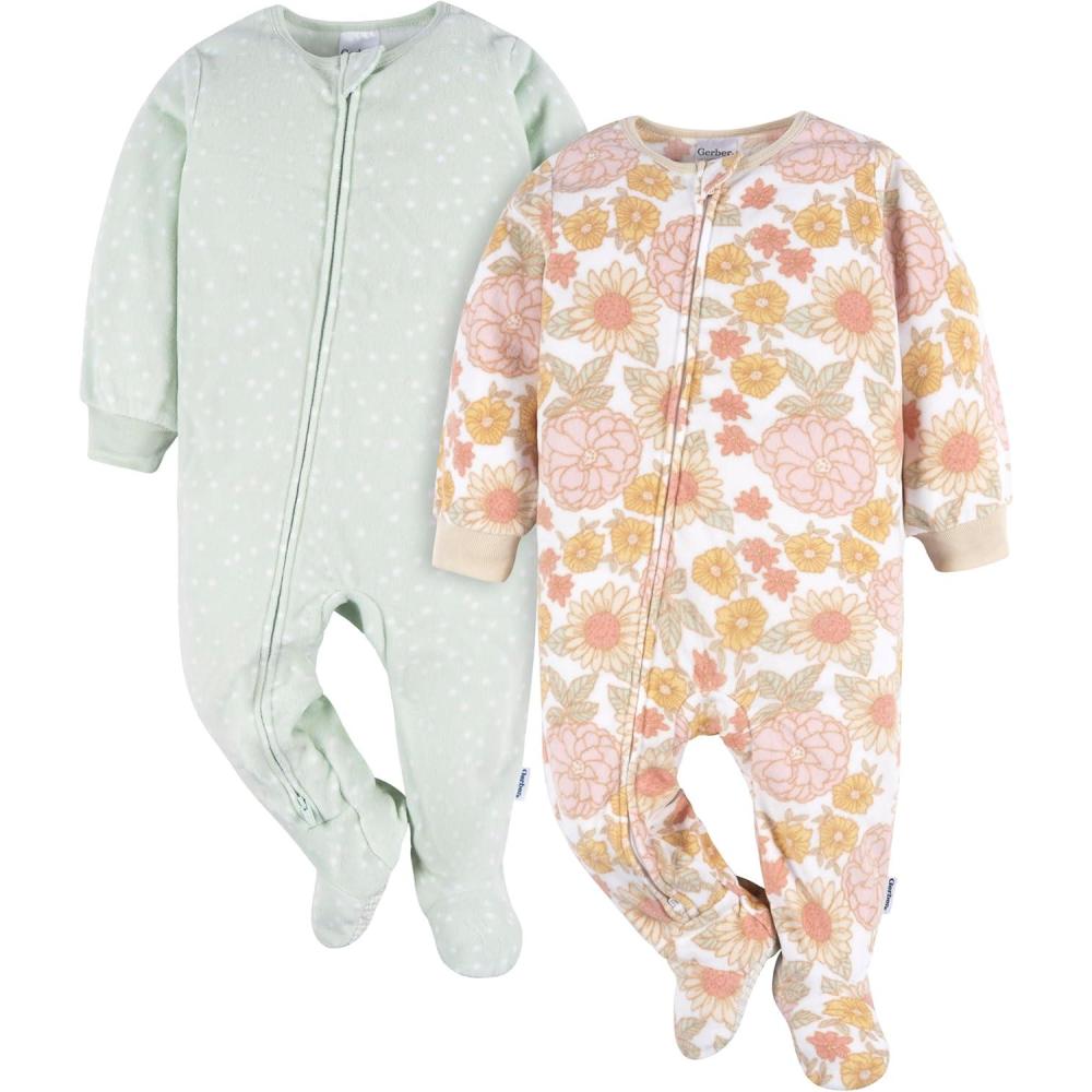 Gerber Baby Girls Flame Resistant Fleece Footed Pajamas 2-pack(Pink Green Floral)