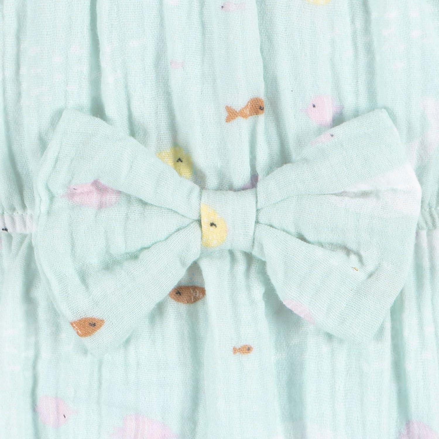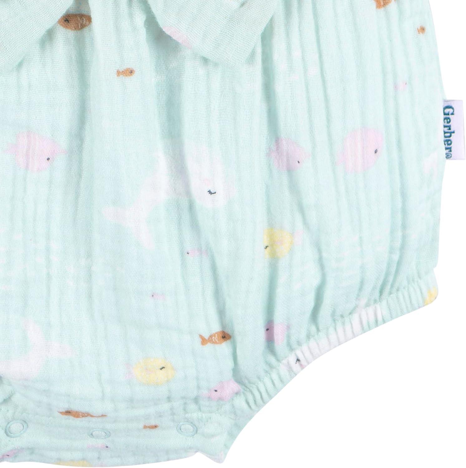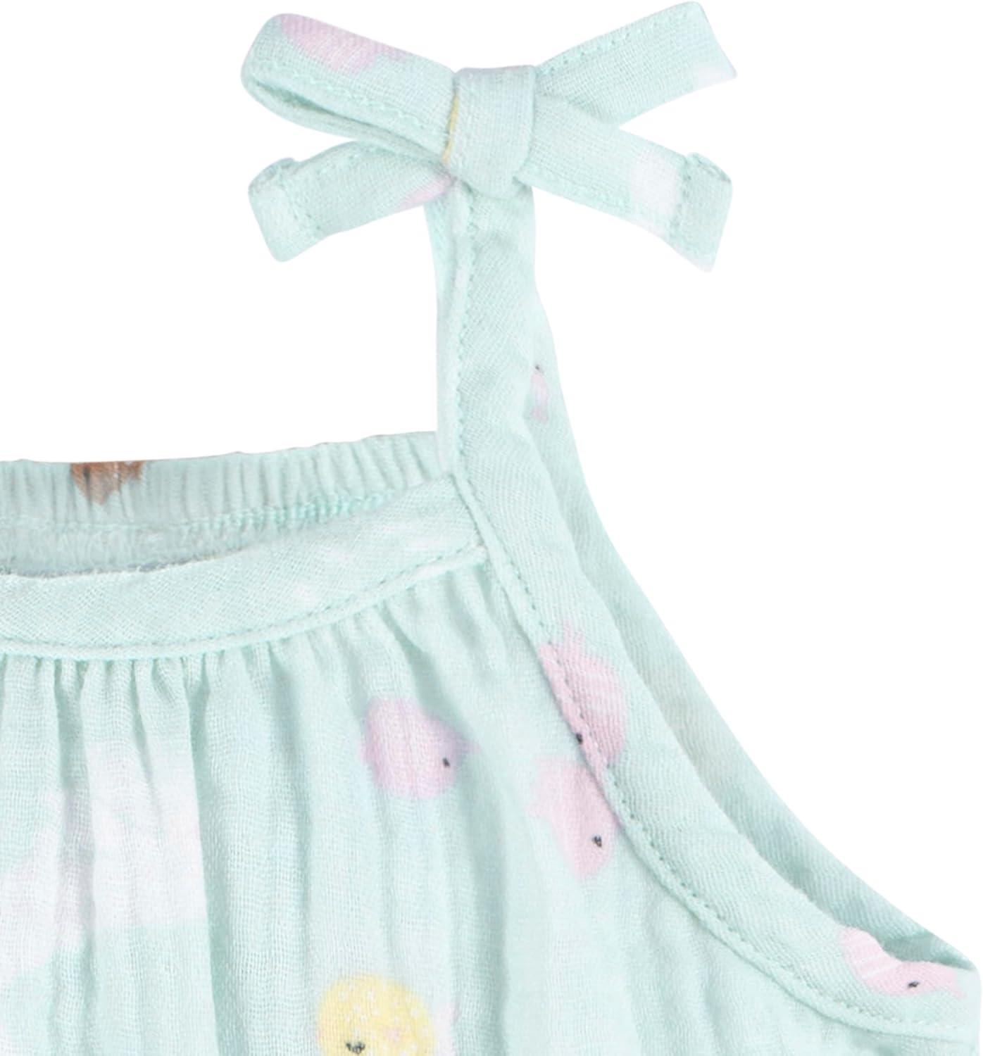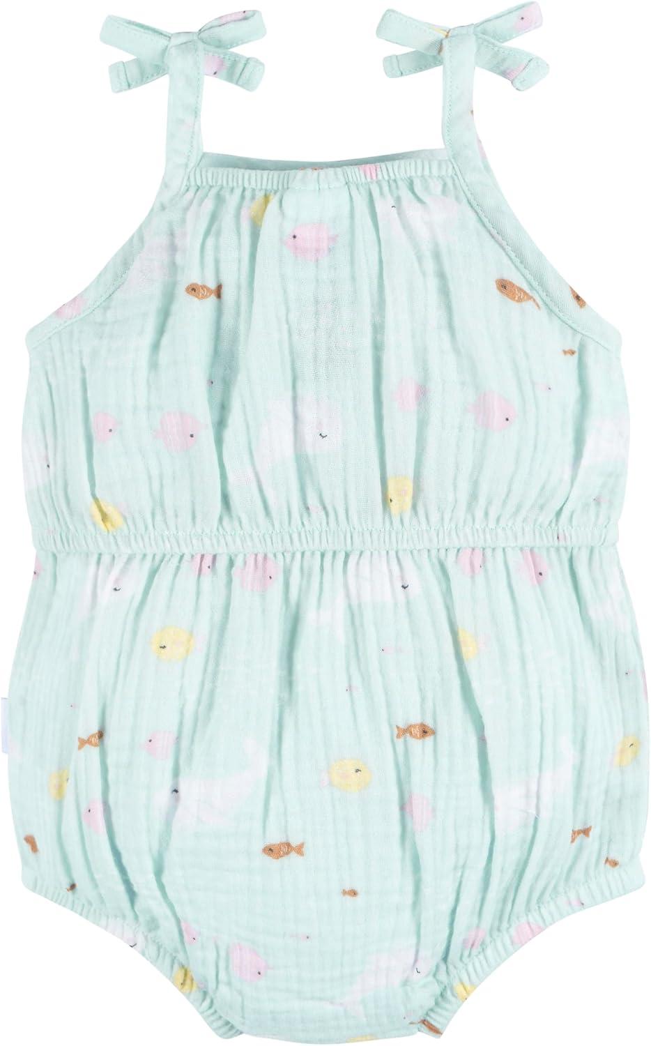 Make your baby girl's day brighter with our adorable baby girl romper! Fashioned from 100% cotton gauze, this romper provides a gentle touch on your baby's sensitive skin. Its sleeveless design is perfectly made for sunny, carefree days, and maintaining its freshness is a breeze with a simple spin in the washing machine. The leg snaps ensure that dressing and changing diapers are fast and stress-free, leaving you with more quality time to spend together. And the cute summer print provides the perfect finishing touch to make your little one look totally cute! Get set for the warmer season with this essential summer romper for your baby girl.