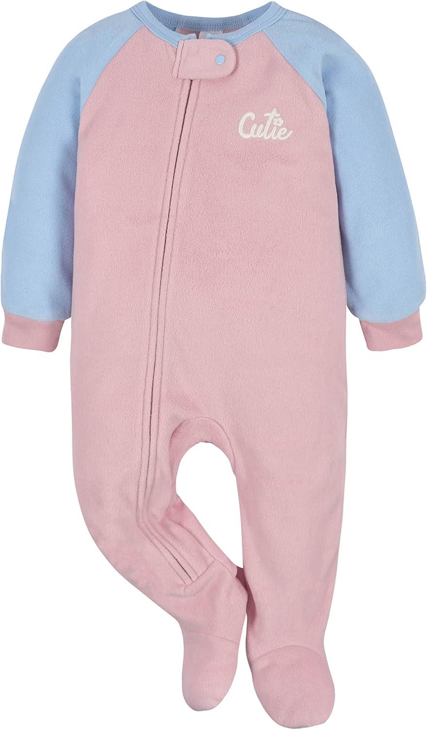 Gerber Baby Girls Loose Fit Fleece Footed Pajamas 2-pack And Toddler Sleepers, Cutie Blue, 5T US
