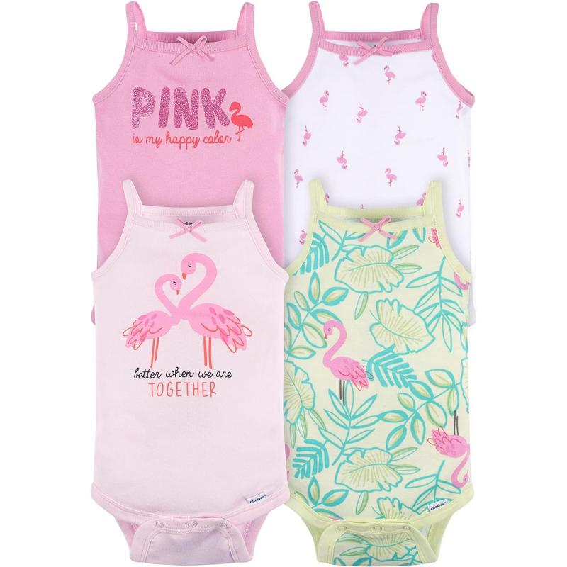 Gerber Baby Girls Multi-Pack Sleeveless Onesies Bodysuit(Flamingos)