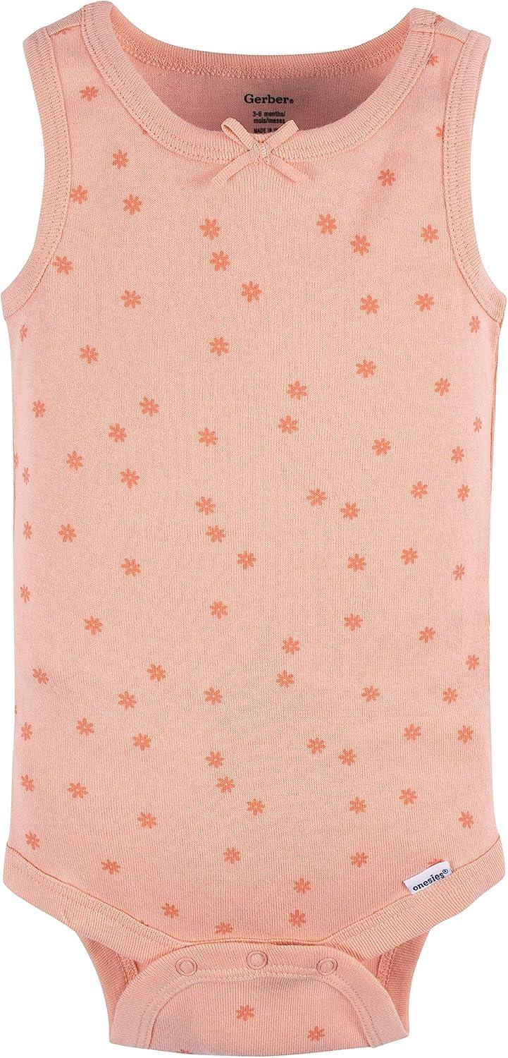 Gerber Baby Girls Multi-Pack Sleeveless Onesies Bodysuit(Orange Flower)