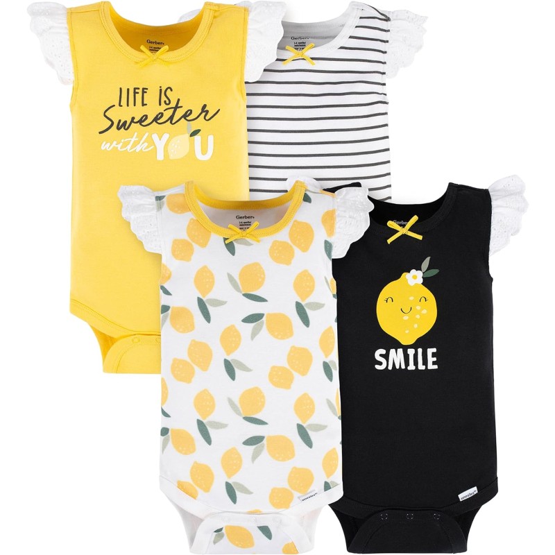 Gerber Baby Girls Multi-Pack Sleeveless Onesies Bodysuit(Yellow Lemons)
