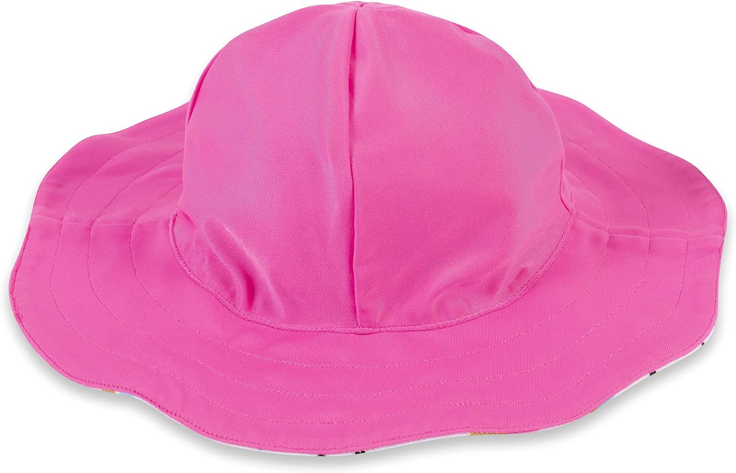 It doesn’t get more fun than summertime swimming with your little one! Make sure you’re keeping your little water bug protected from the sun with our adorable swimwear. Our baby and toddler swim hats are made with UPF 50+ fabric that blocks 98% of the sun’s harmful rays from reaching your little one’s sensitive skin. This protective fabric will help prevent sunburns so your child can enjoy a full day of splashing in the water. Our innovative swim fabric is silky to the touch and stretchy so that you can get the swim hat on and off with ease. Plus, it’s very quick to dry. Quick-drying fabric prevents chaffing and irritation when your little one is drying off on the beach, poolside, or lakeside. This swim hat features a brim to shade your little one’s face and neck from the sun. Plus, it’s reversible with one solid side and one printed side. Your little one will love how comfortable this sweet little hat is, and you’ll love how easy it is to care for. Our swim hats may be machine washed and machine dried, time and time again, without wear and tear. This pack contains one baby and toddler girls’ swim hat. 83% polyester 17% spandex tricot