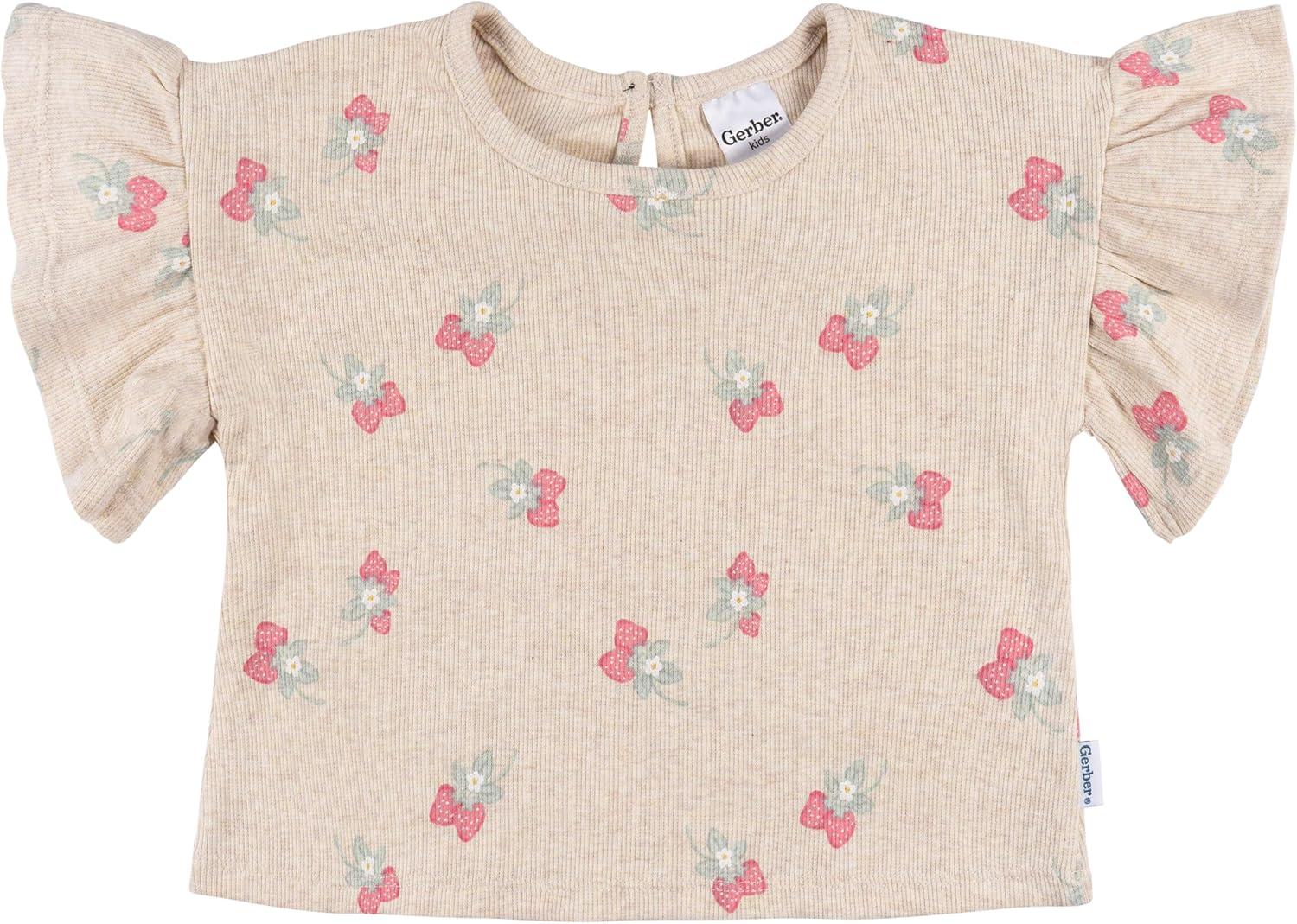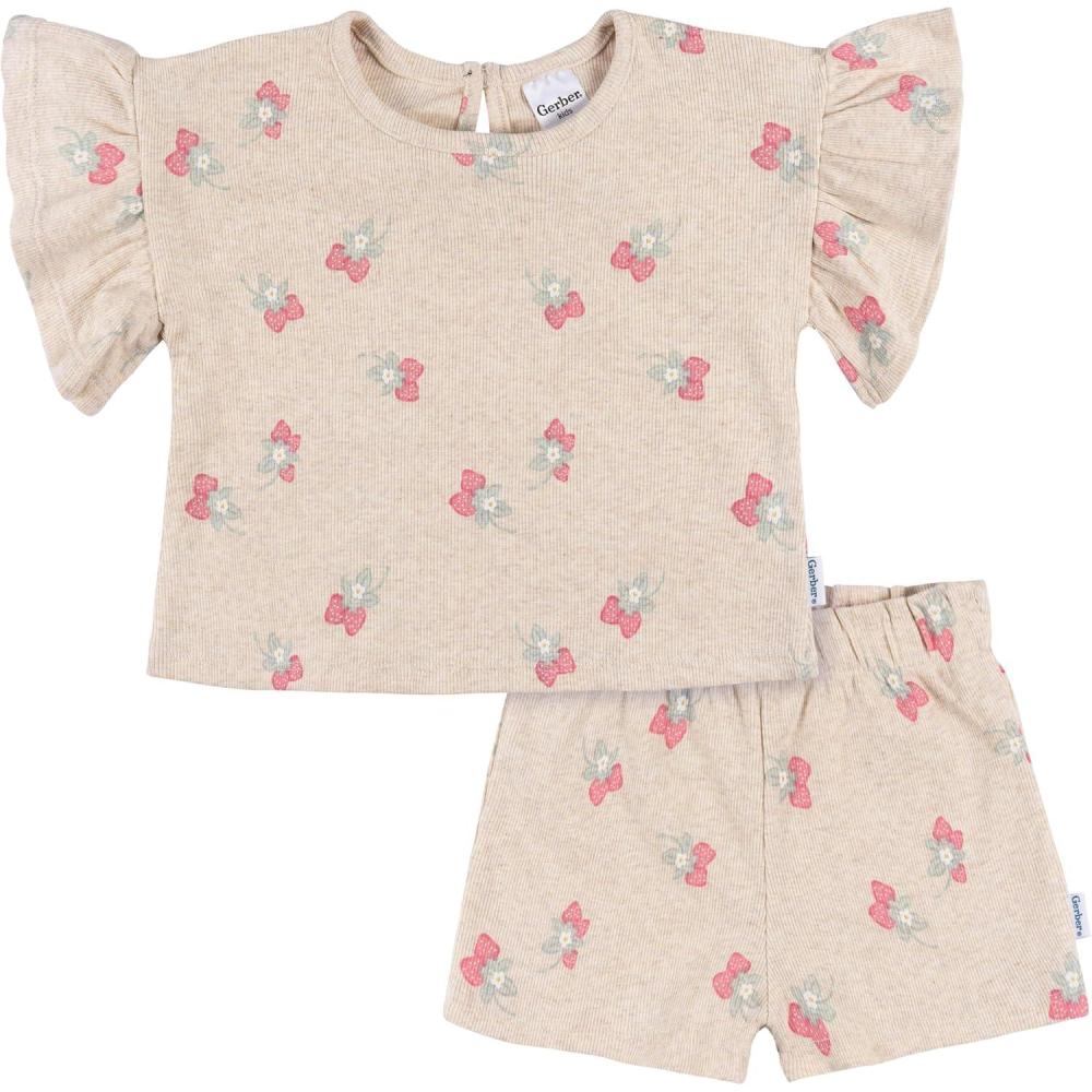 Gerber baby-girls Shirt and Shorts Set(Heather Strawberry)