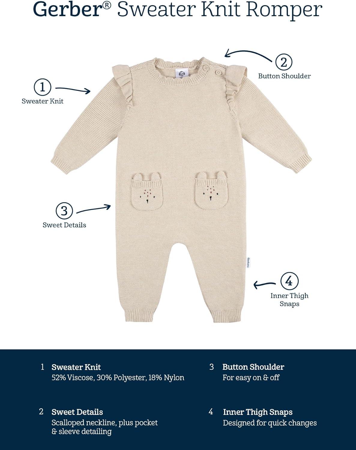 Gerber Baby Girls’ Sweater Knit Romper Jumpsuit(Grey Deer)