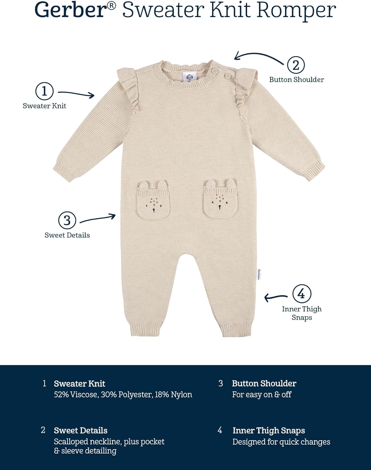 Be the first to review “Gerber Baby Girls Sweater Knit Romper Jumpsuit(Grey Deer)”