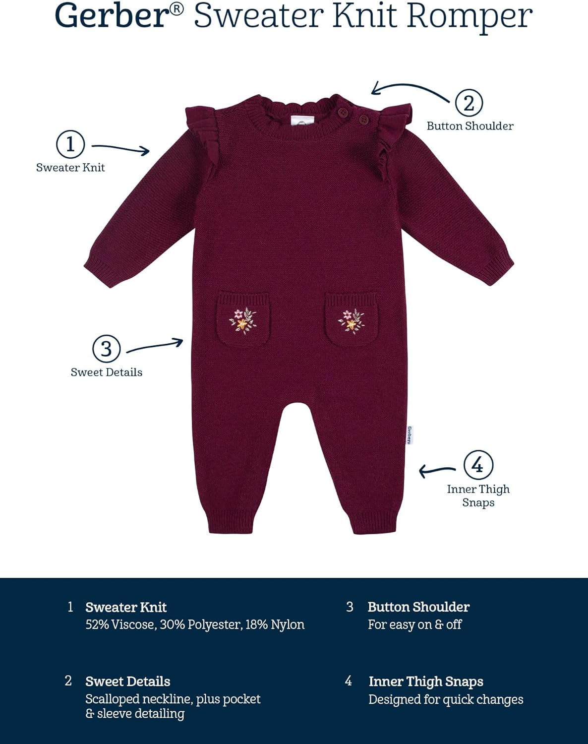 Gerber Baby Girls Sweater Knit Romper Jumpsuit(Purple Flowers)