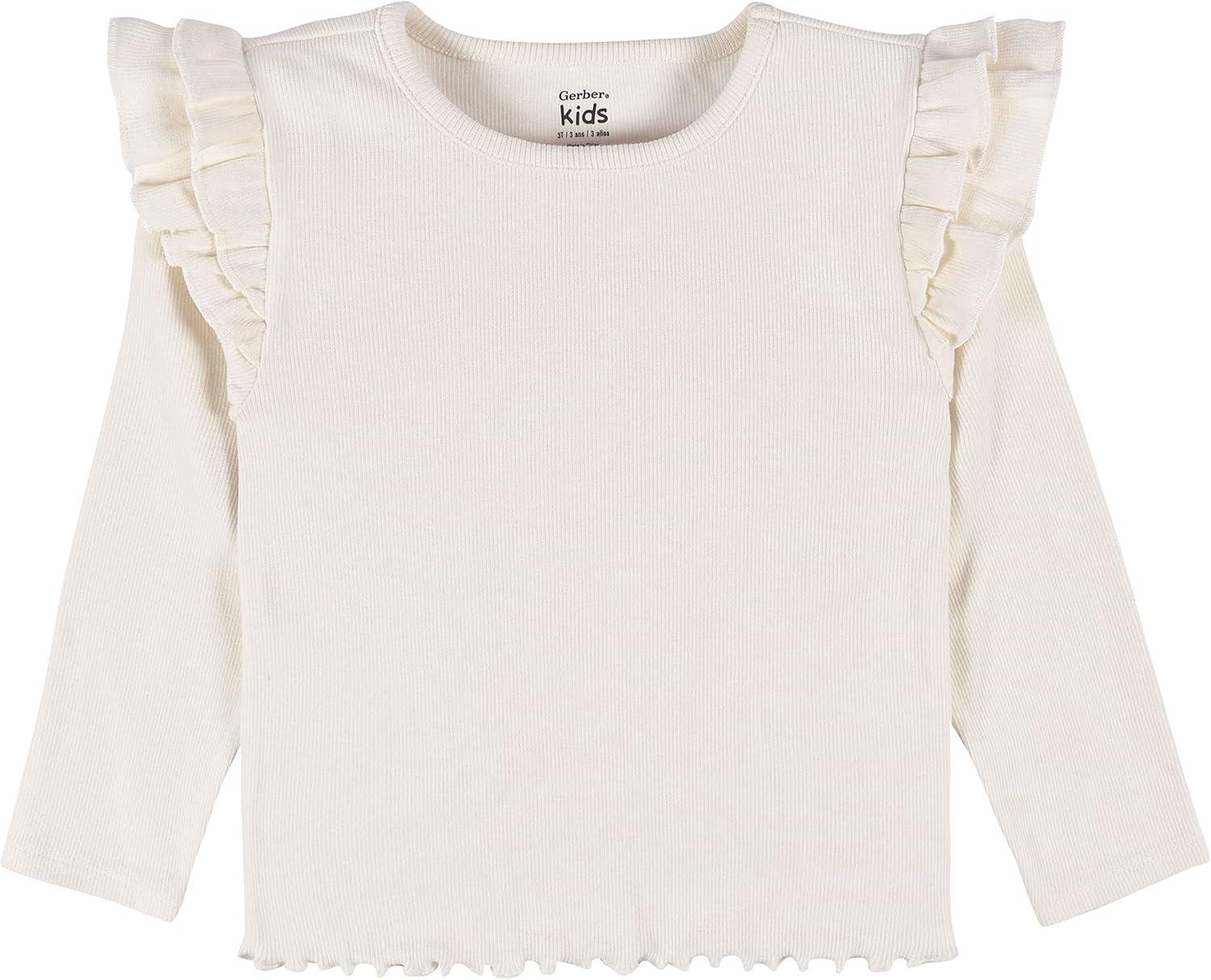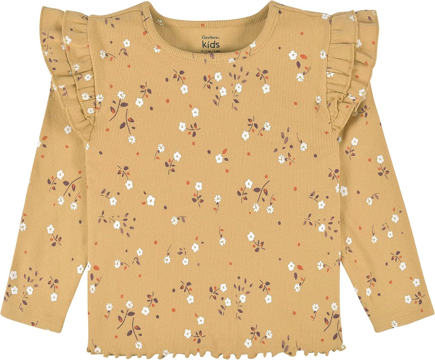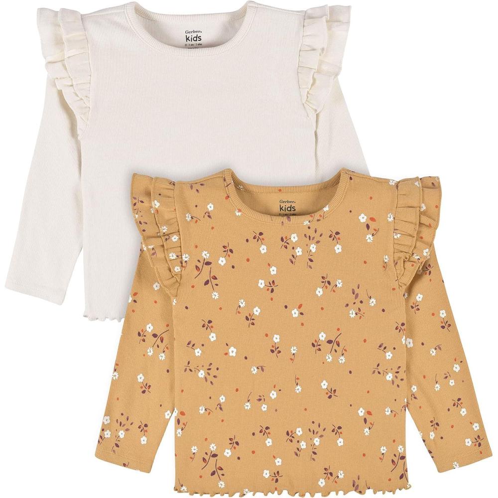 Gerber Baby Girls’ Toddler 2-Pack Double Ruffle Long Sleeve Tops(Mustard Floral)