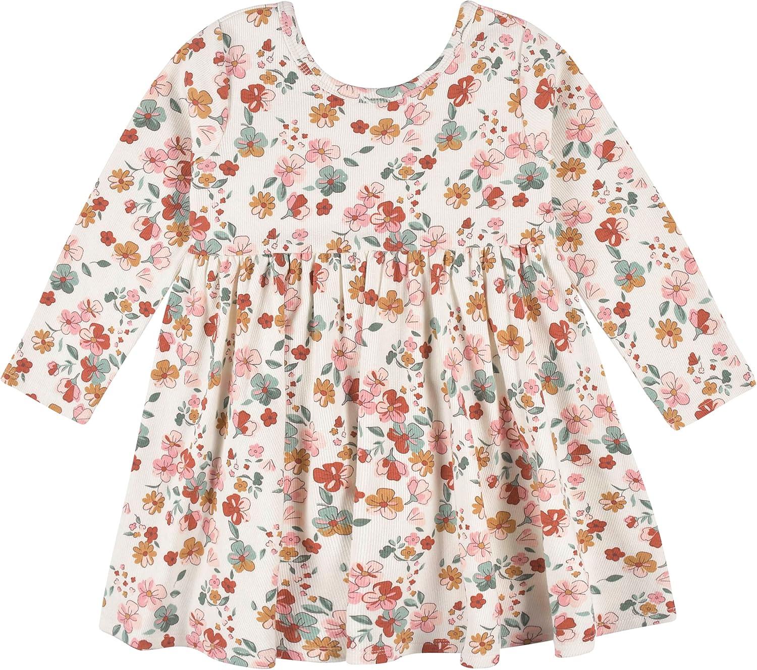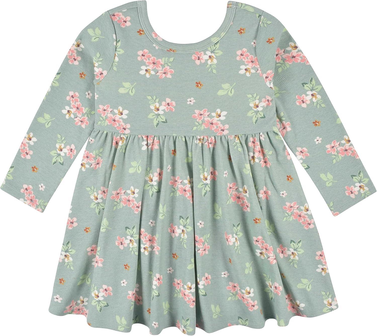 Gerber baby-girls Toddler 2-pack Long Sleeve Dresses(Vanilla & Green Floral)