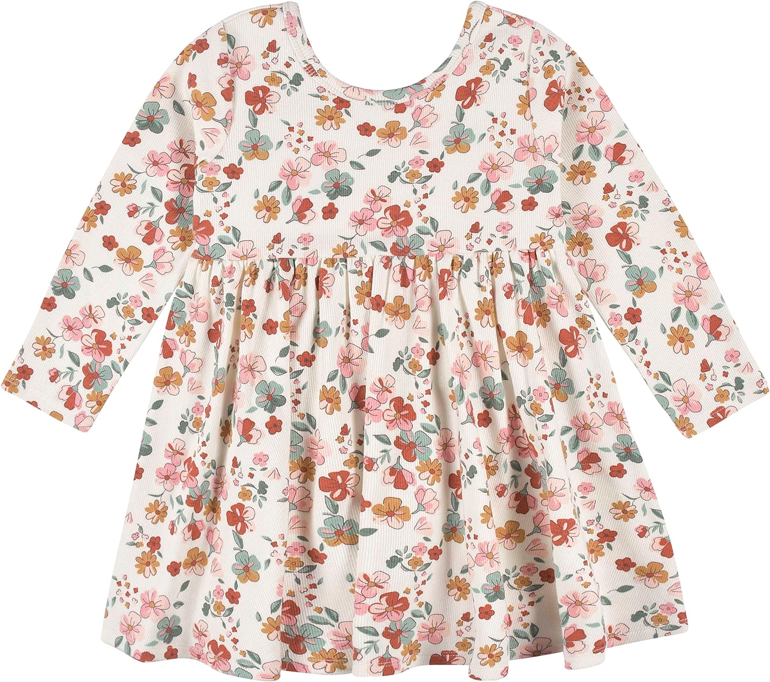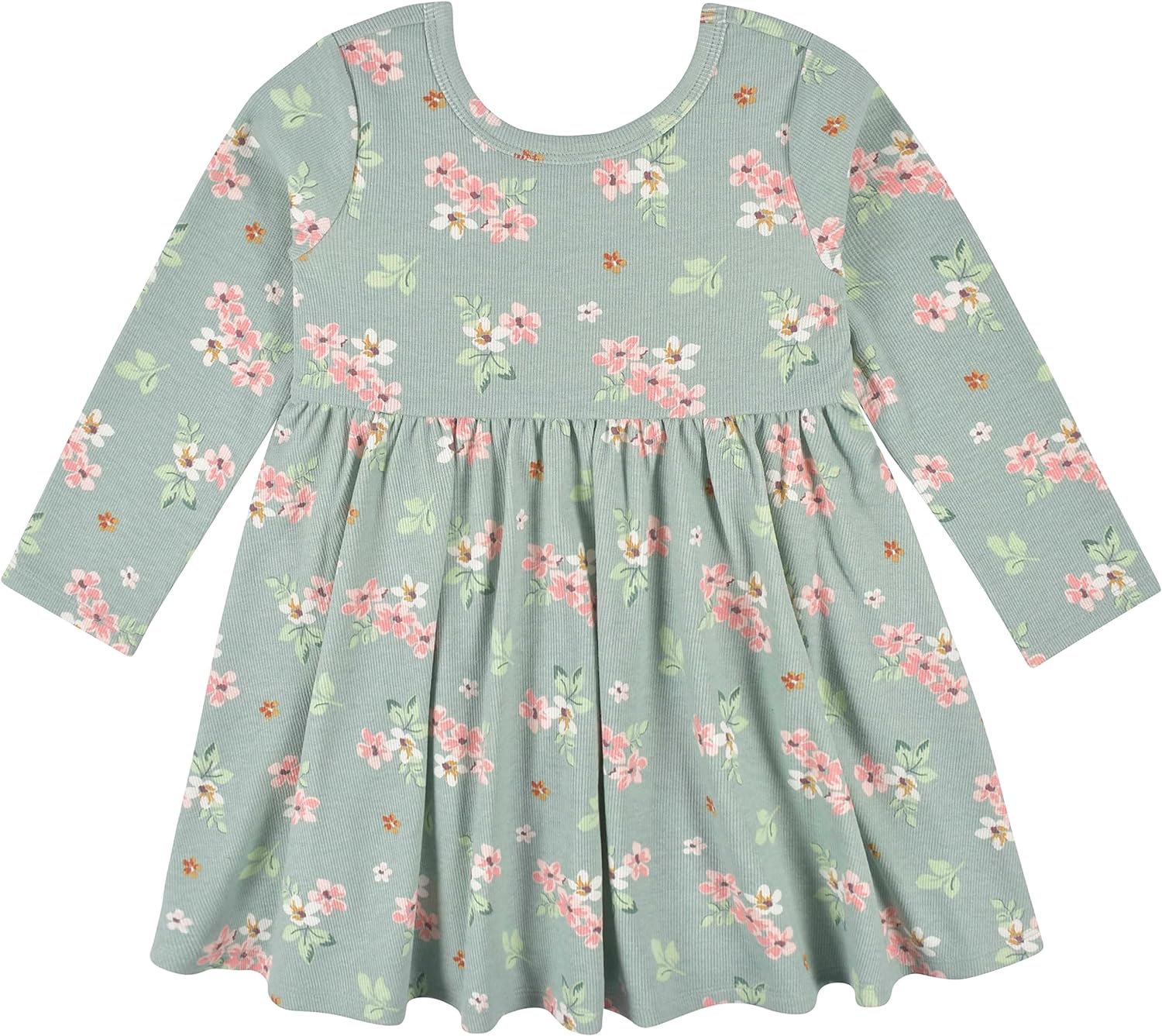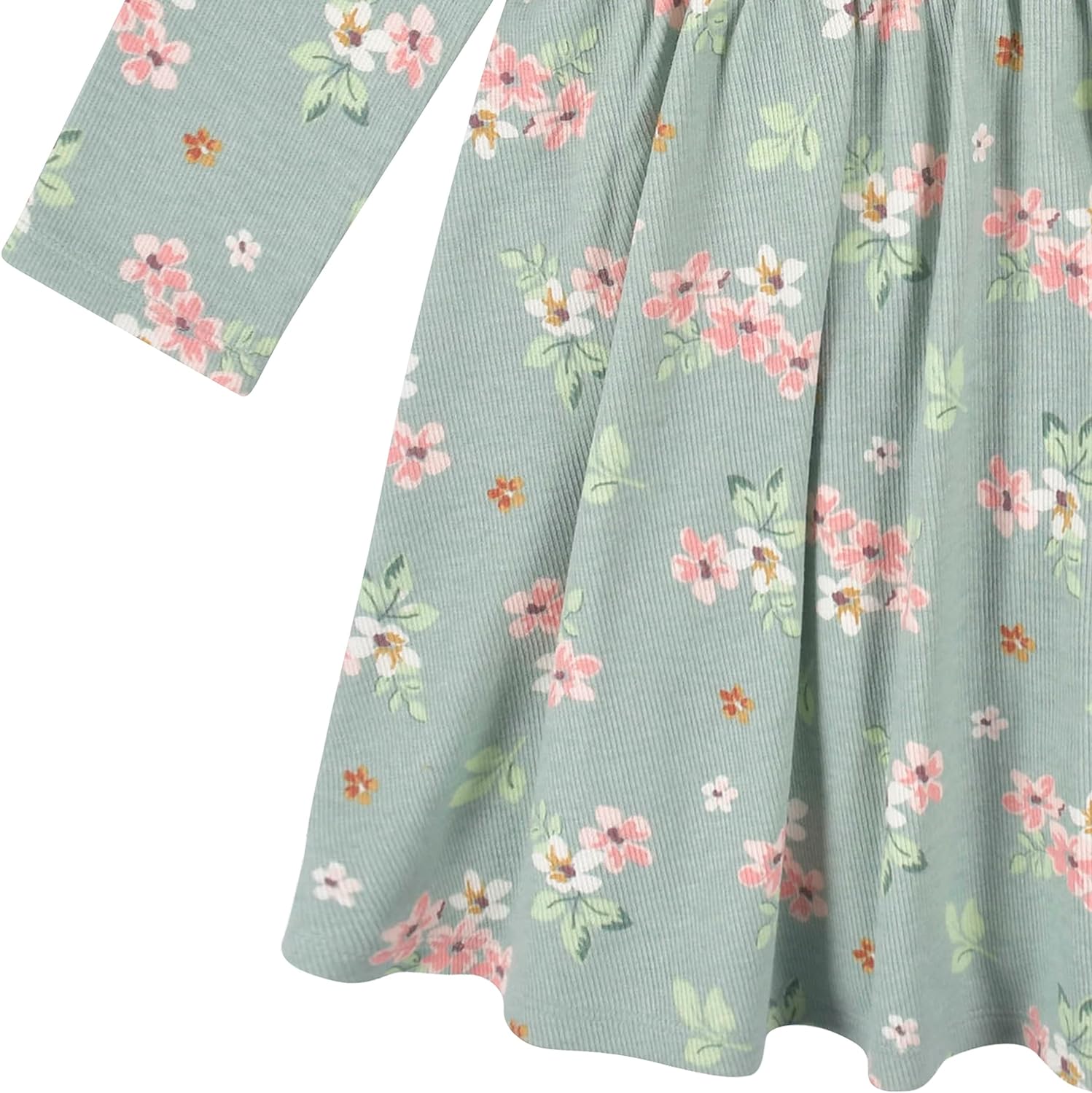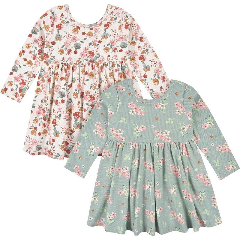 Gerber Baby Girls’ Toddler 2-Pack Long Sleeve Dresses(Vanilla & Green Floral)