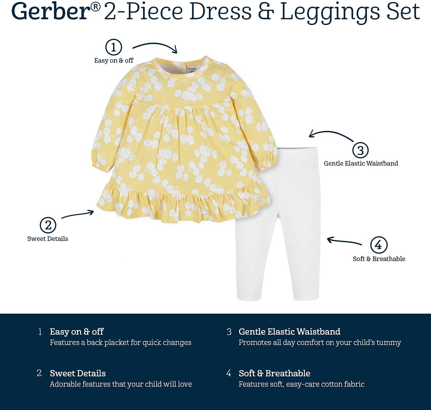 Gerber baby-girls Toddler 2-piece Long Sleeve Dress & Leggings Set(Golden Flowers)