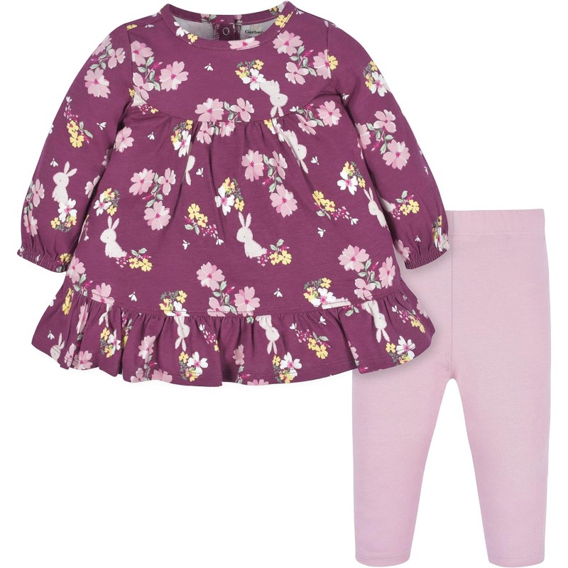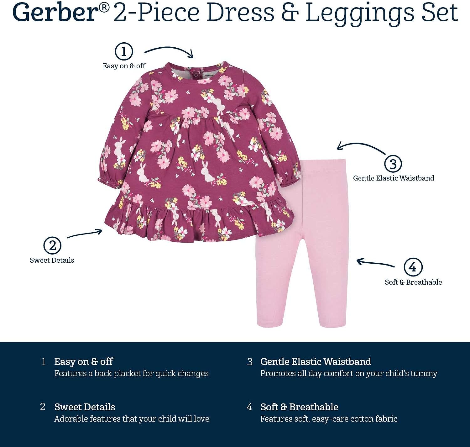 Gerber baby-girls Toddler 2-piece Long Sleeve Dress & Leggings Set(Pink Bouquets)