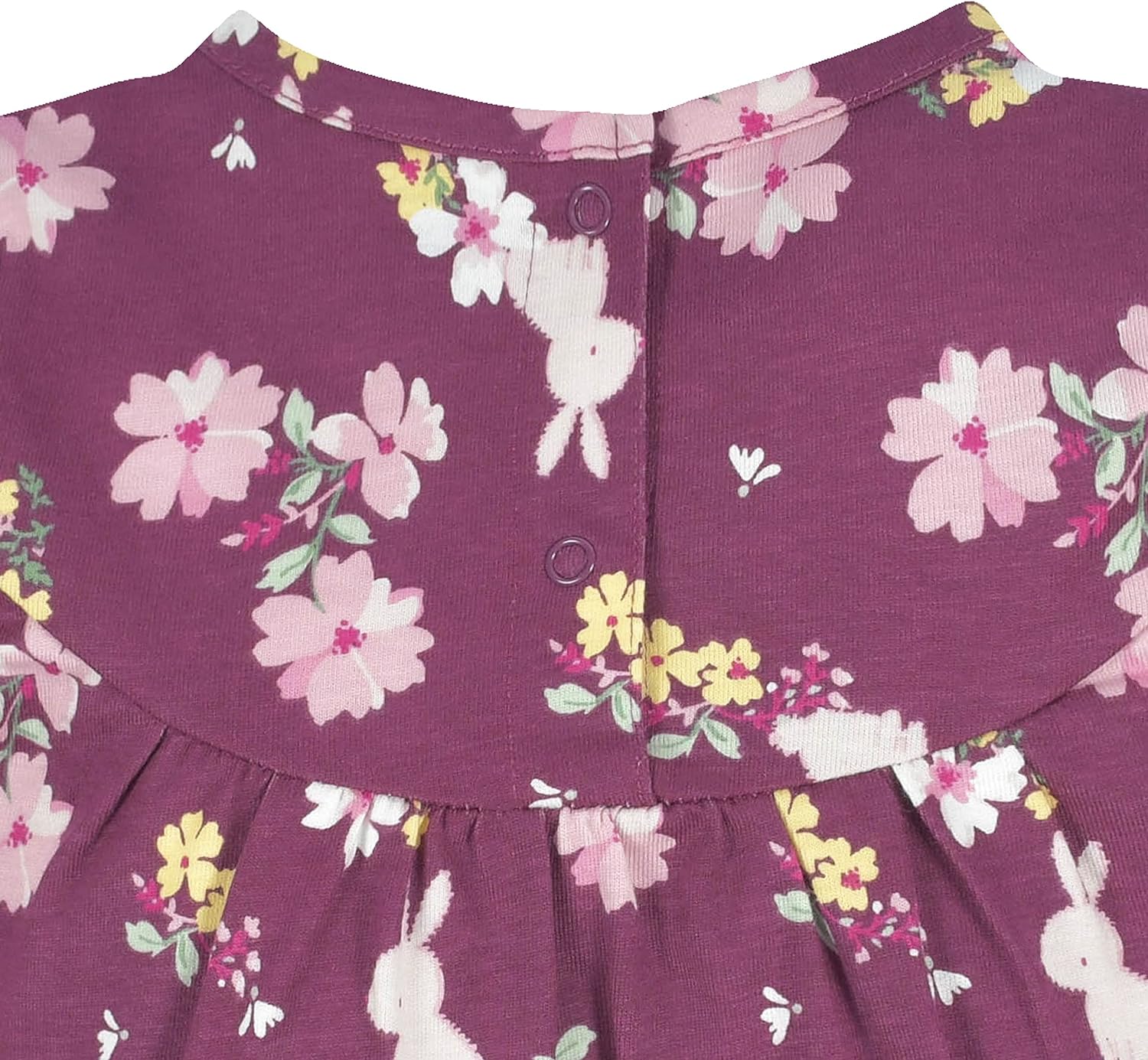 Dress features long sleeves & comfy crew neck. Features back placket on sizes 24M & smaller. Larger sizes do not.