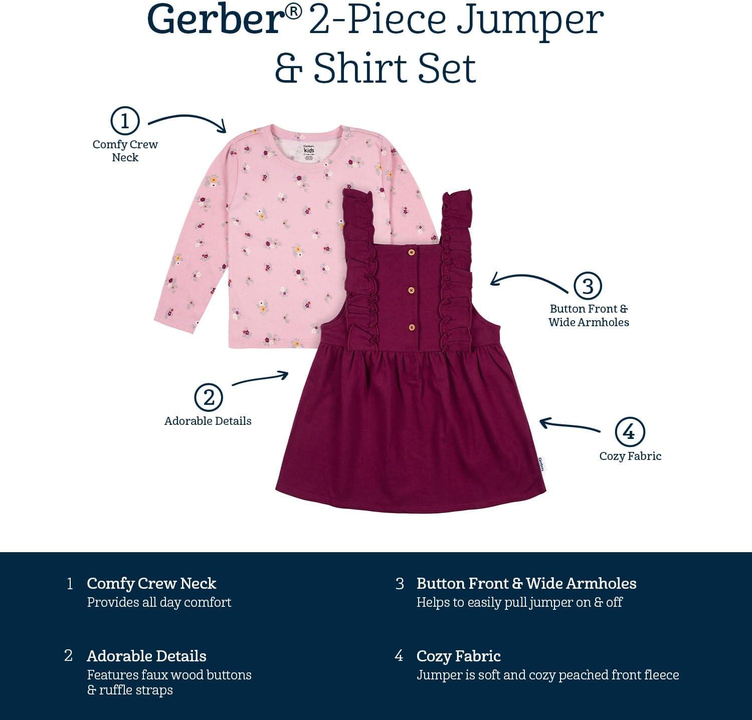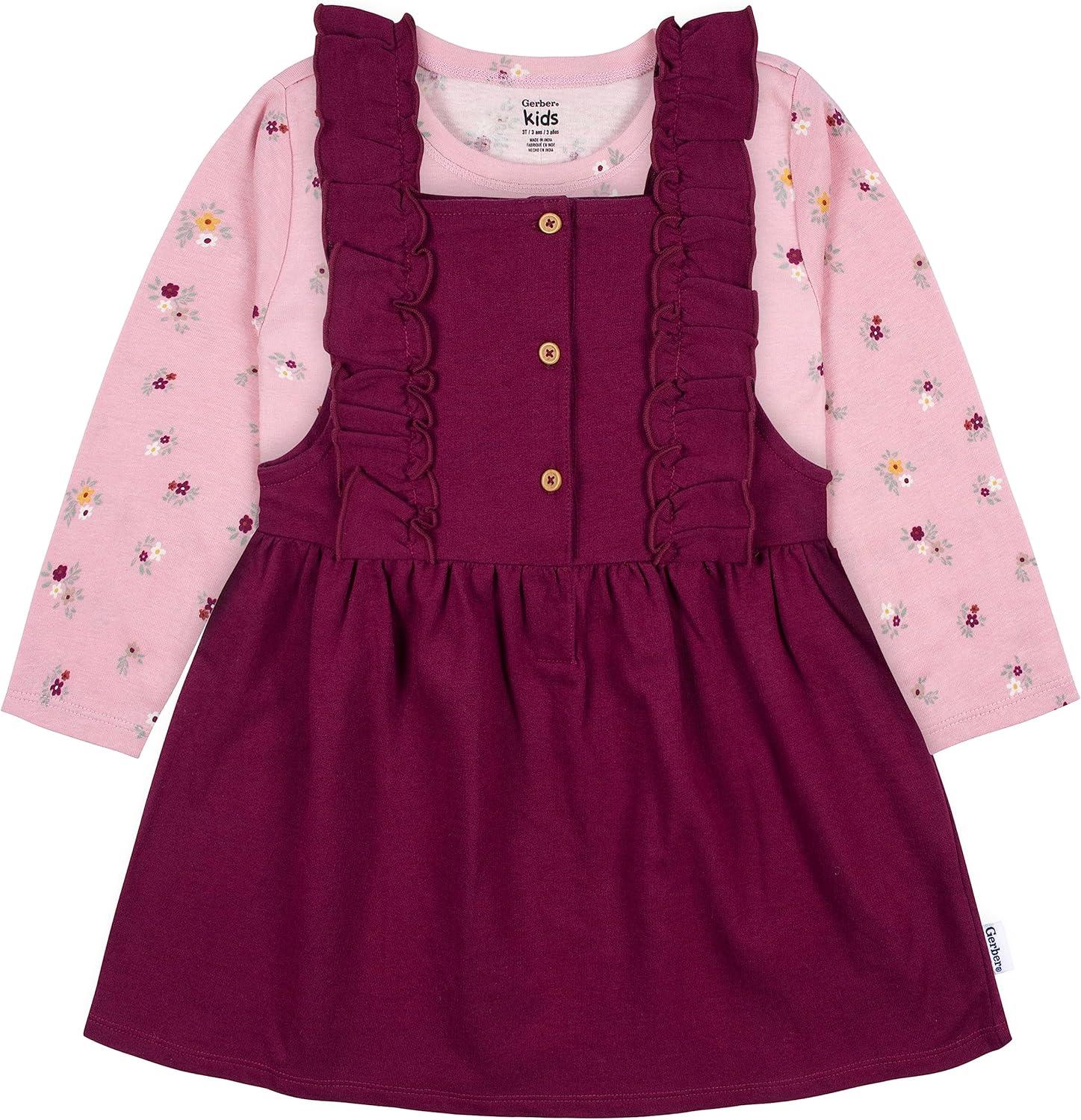 Gerber baby-girls Toddler 2 Piece Overall Dress Set(Toddler Purple Floral)