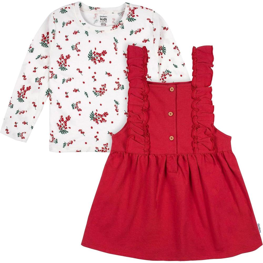 Gerber baby-girls Toddler 2 Piece Overall Dress Set(Toddler Red Holly Berries)