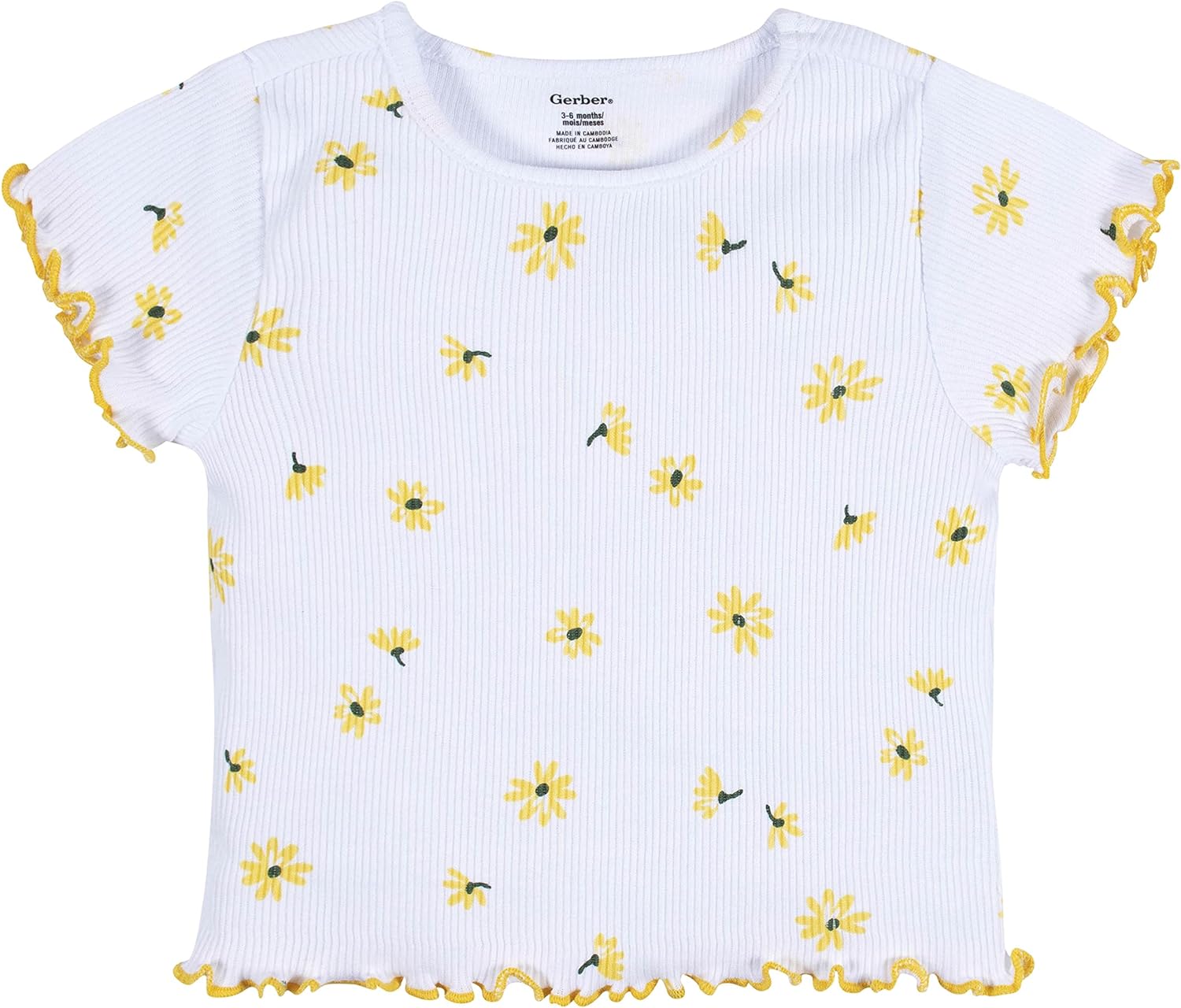 Gerber Baby Girls’ Toddler 3-Pack Short Sleeve Tees(Yellow Lemons)