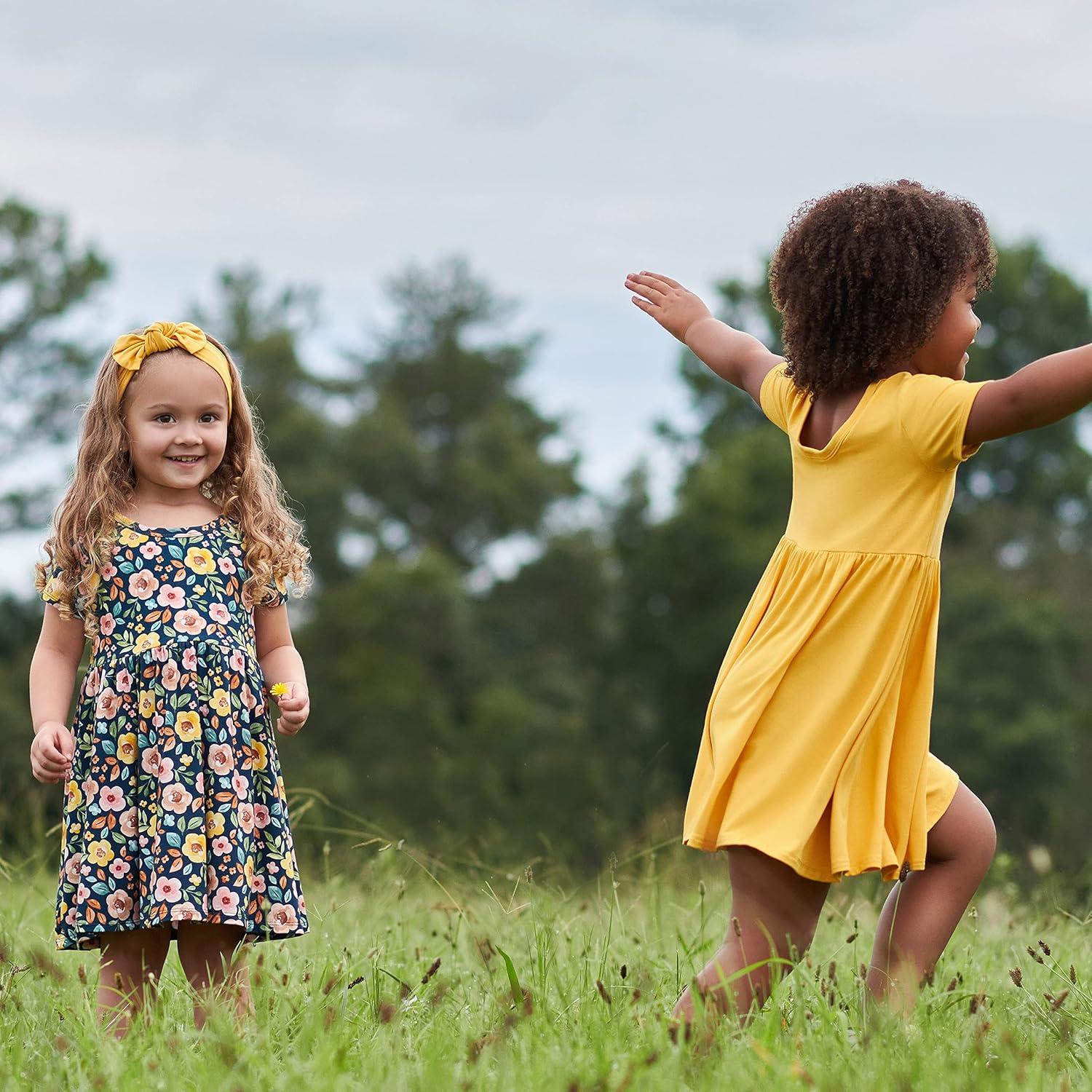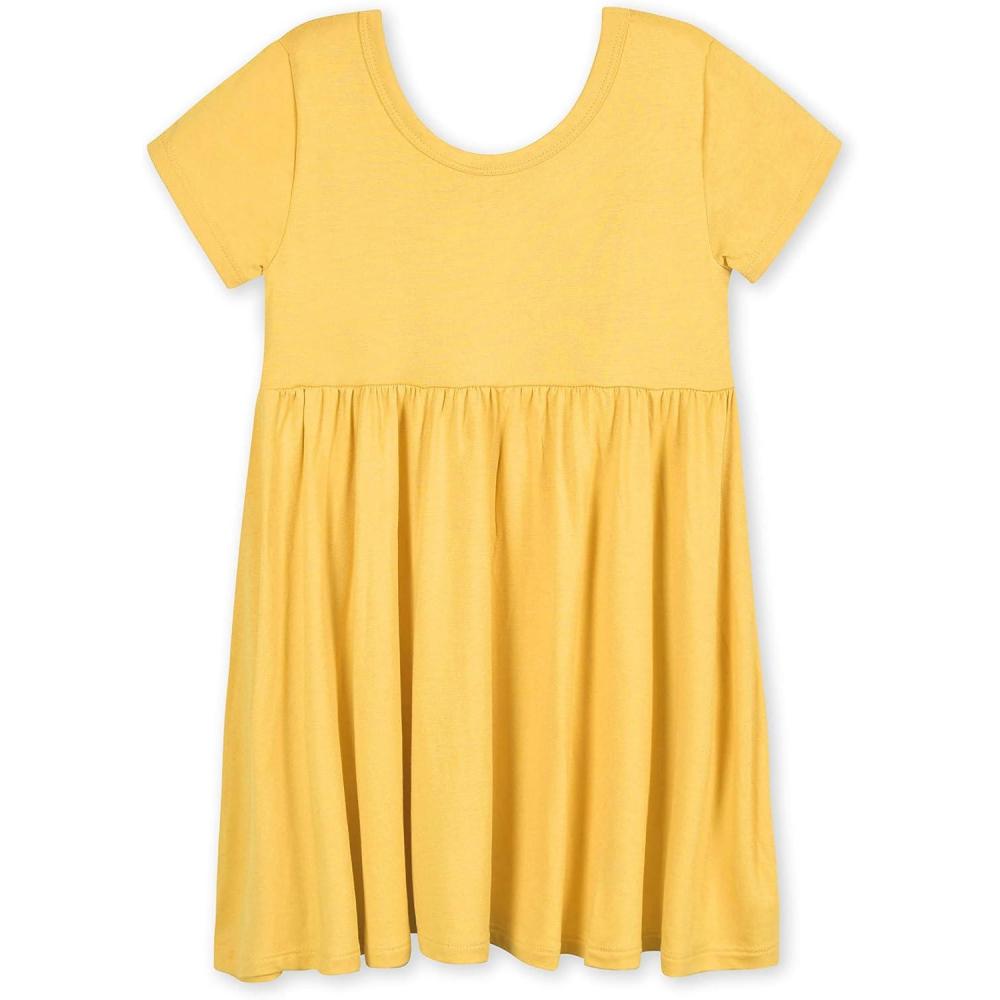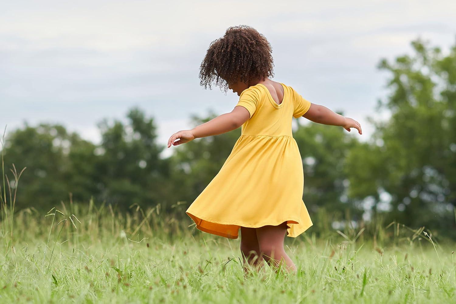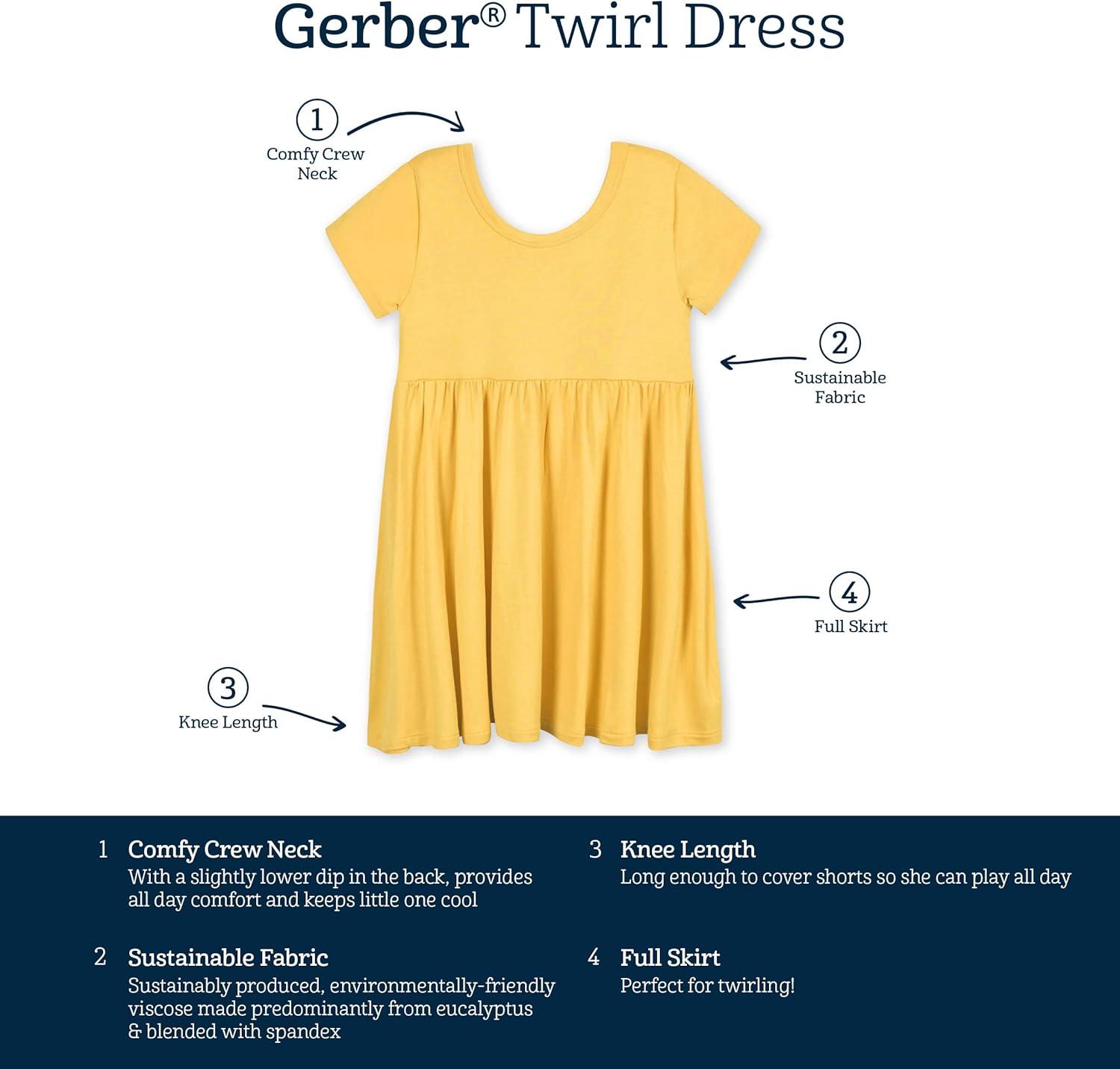Gerber Baby Girls’ Toddler Buttery Soft Short Sleeve Twirl Dress with Viscose Made from Eucalyptus(Honey)