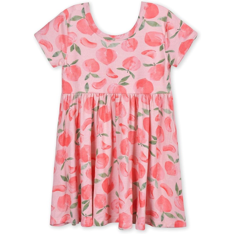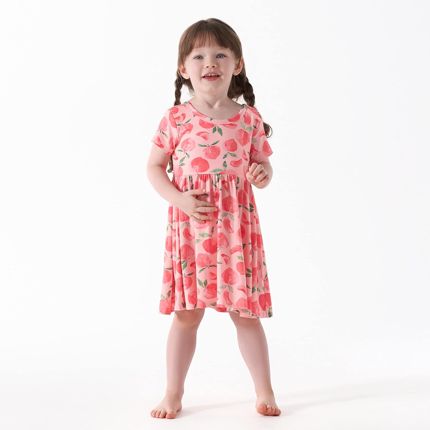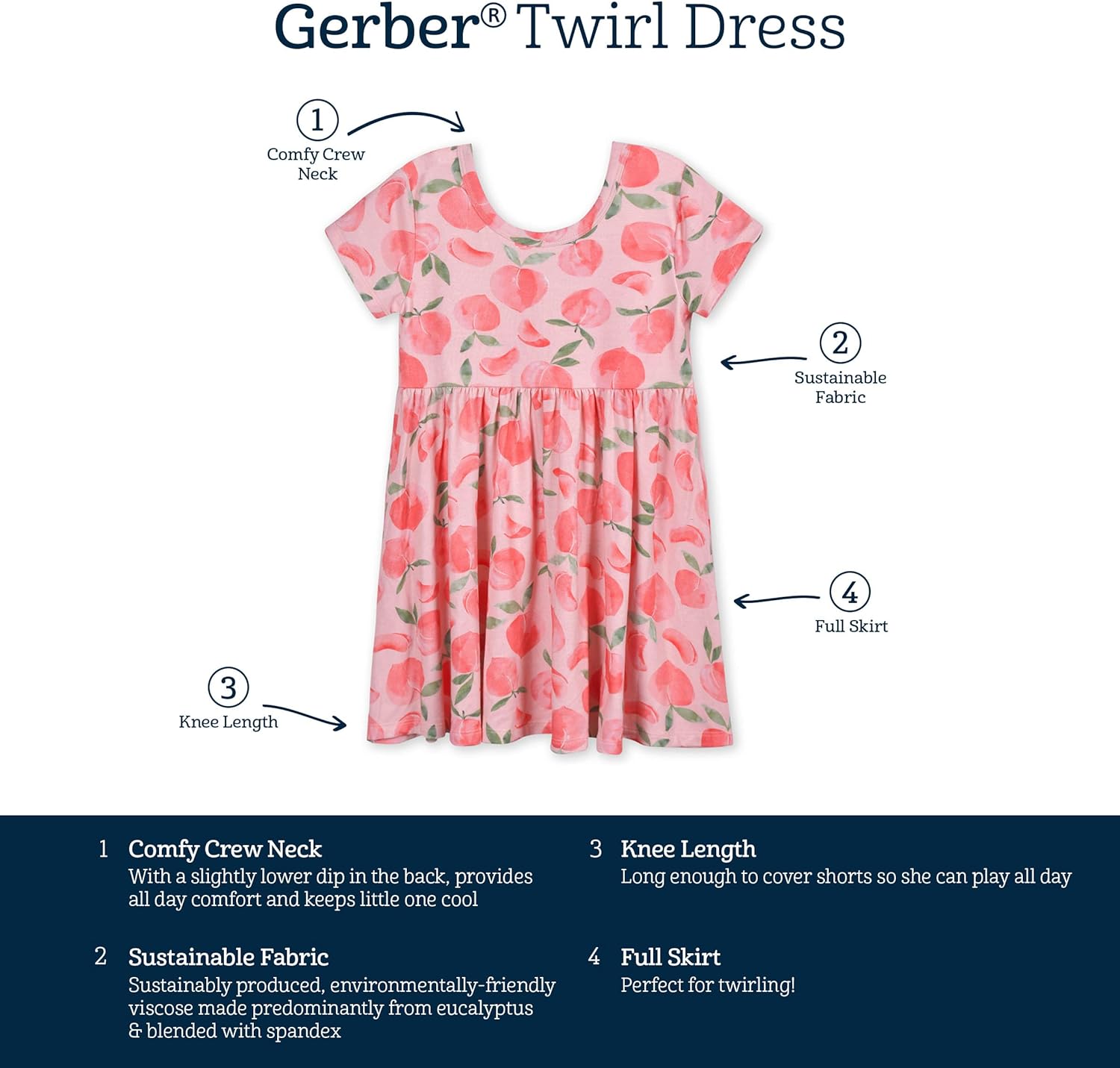 Gerber Baby Girls’ Toddler Buttery Soft Short Sleeve Twirl Dress with Viscose Made from Eucalyptus(Just Peachy)