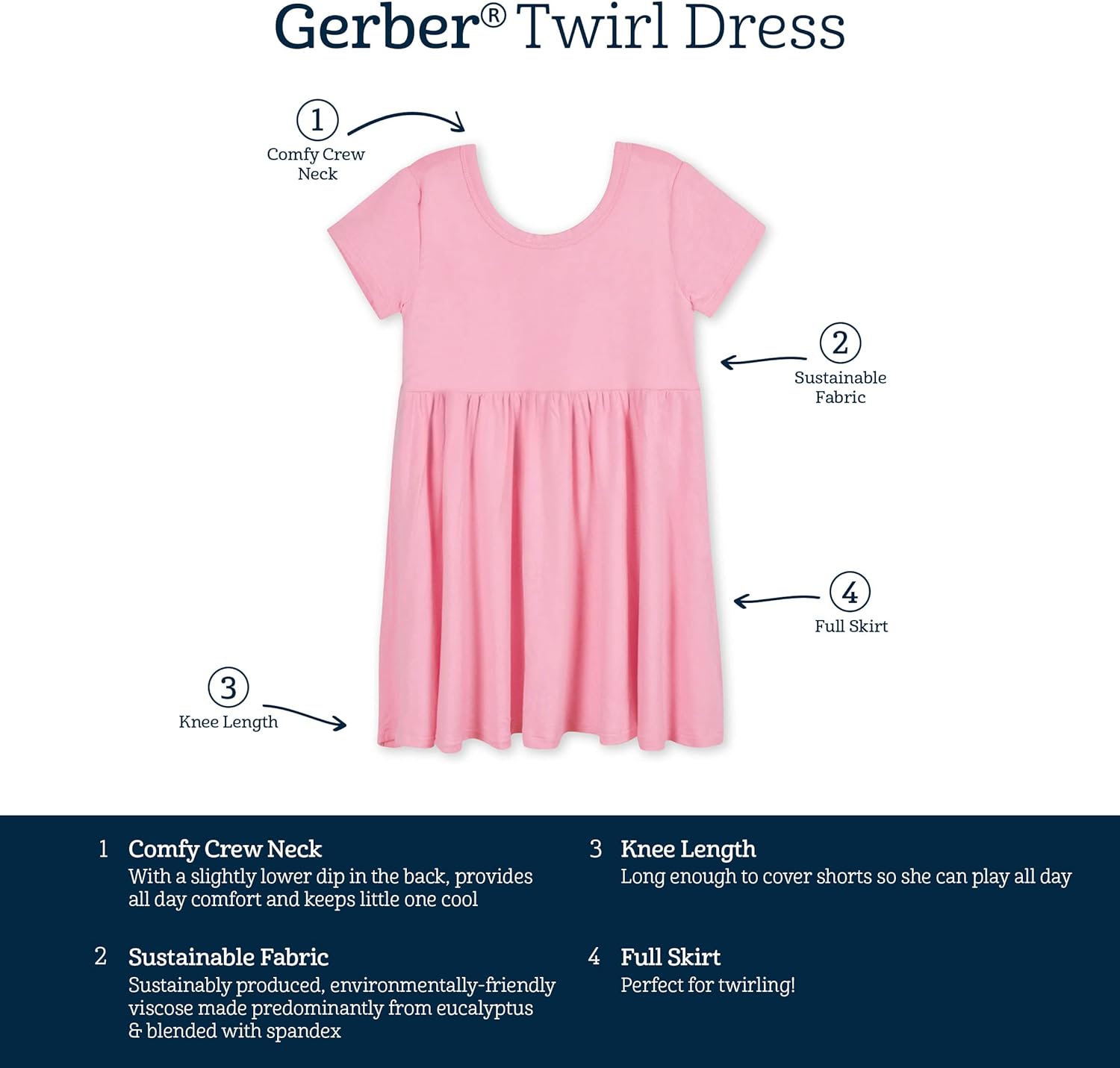 Gerber Baby Girls’ Toddler Buttery Soft Short Sleeve Twirl Dress with Viscose Made from Eucalyptus(Pink Lemonade)