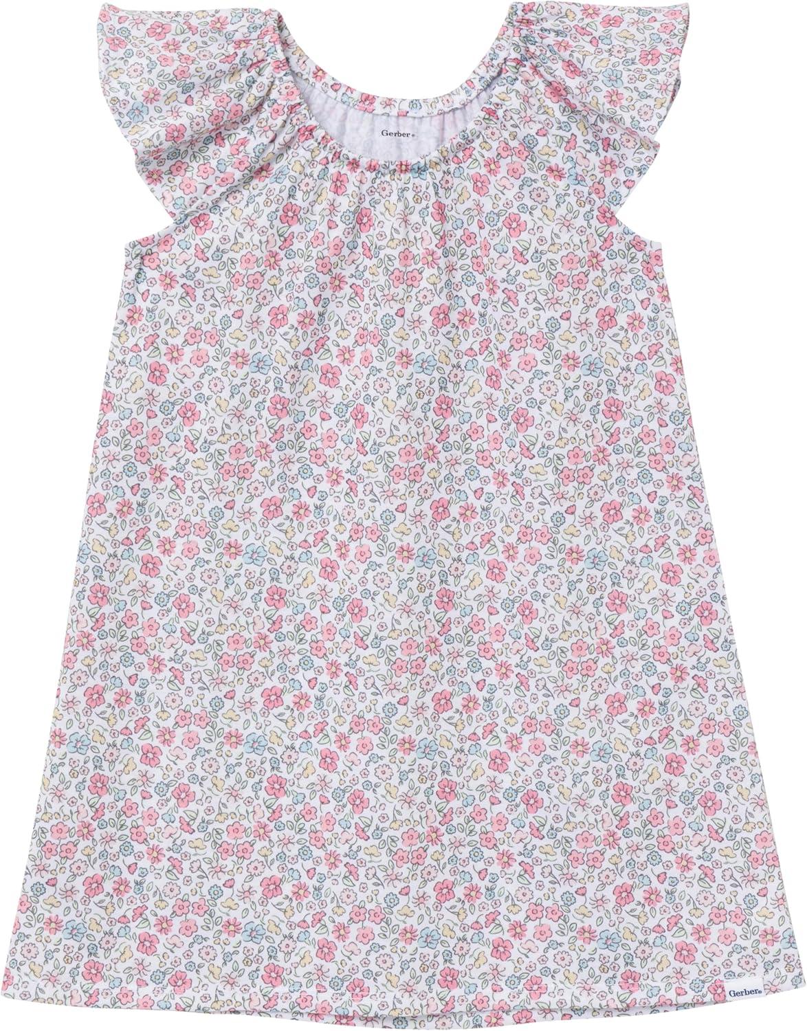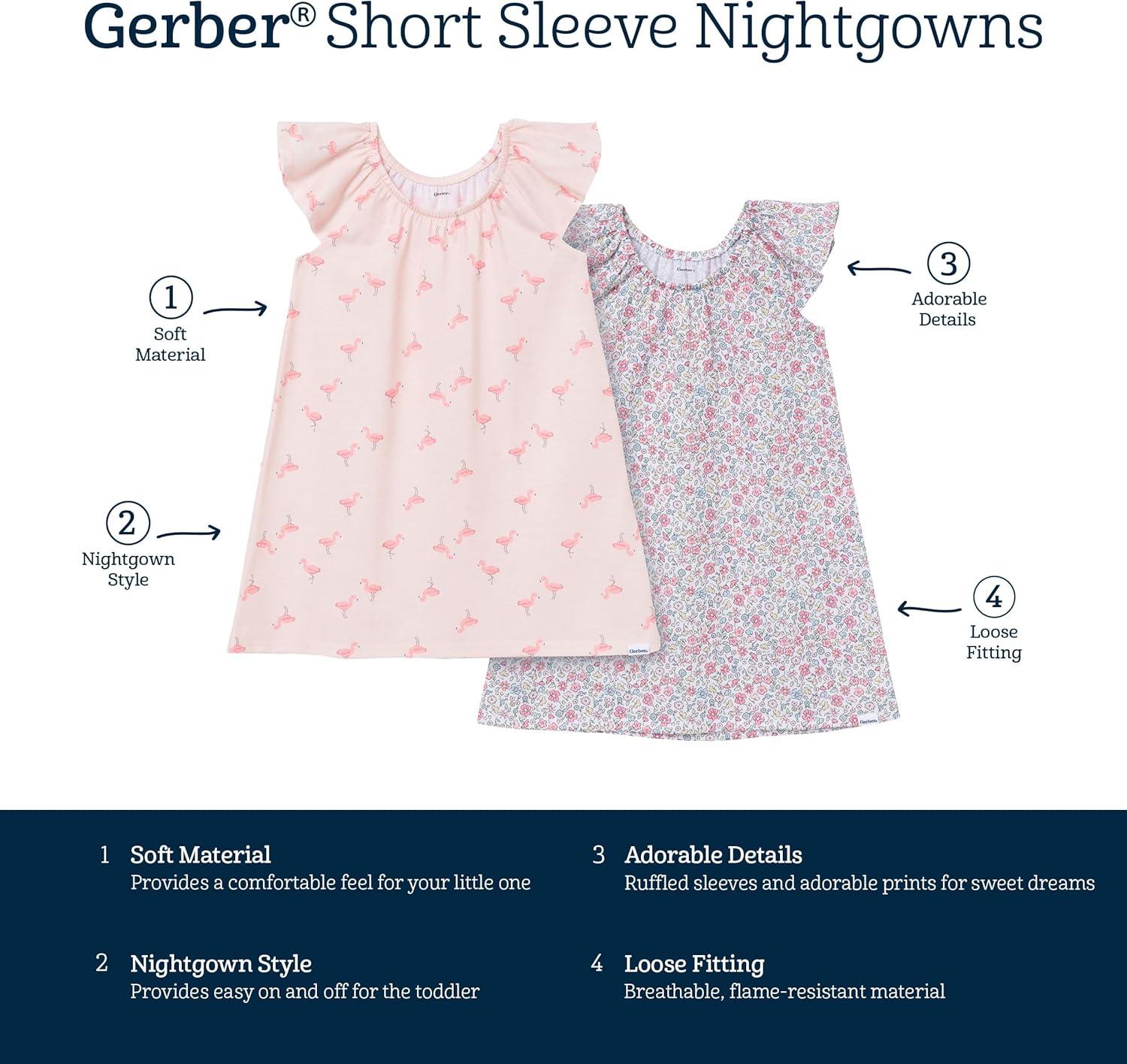 Let your little one drift off to dreamland in our delightful toddler girl nightgown! Made from soft and stretchy material, the light and breathable feel provides a comfy night's sleep. The ribbed neck and elastic sleeves offer a flexible fit, while the ruffled bottoms add a charming touch. Designed for easy on and off, this nightgown ensures a peaceful and comfortable night for both you and your little one. Flame resistant for child safety.