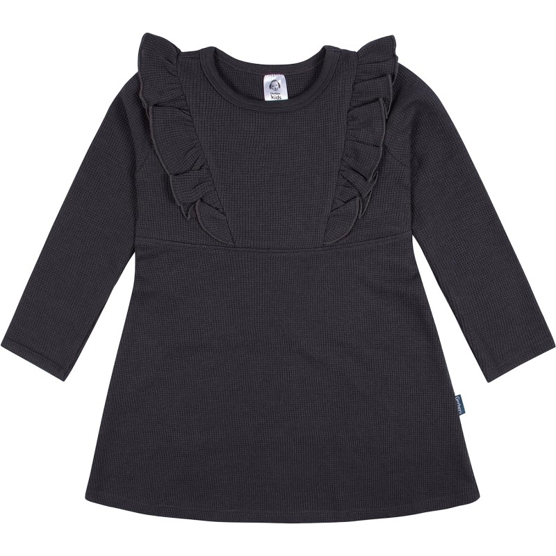 Gerber Baby Girls’ Toddler Long Sleeve Dress with Ruffle Detail(Charcoal)