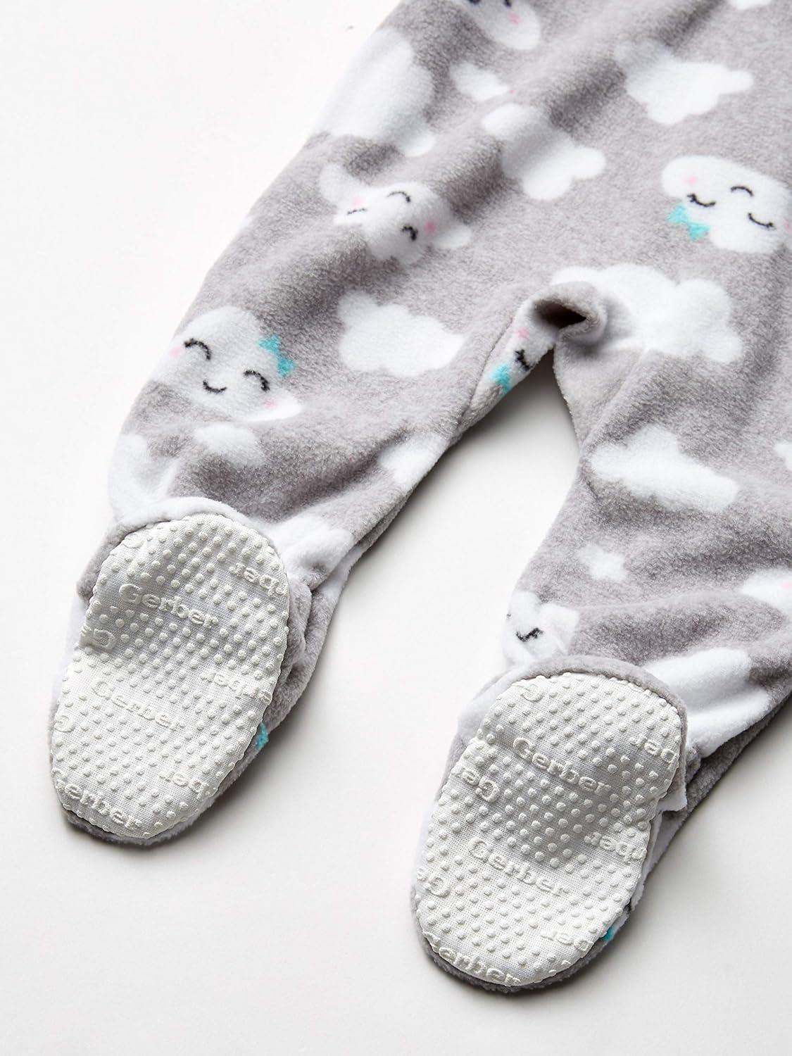 Gerber Baby Girls’ Toddler Loose Fit Flame Resistant Fleece Footed Pajamas 2-Pack(Blue/Pink Clouds)