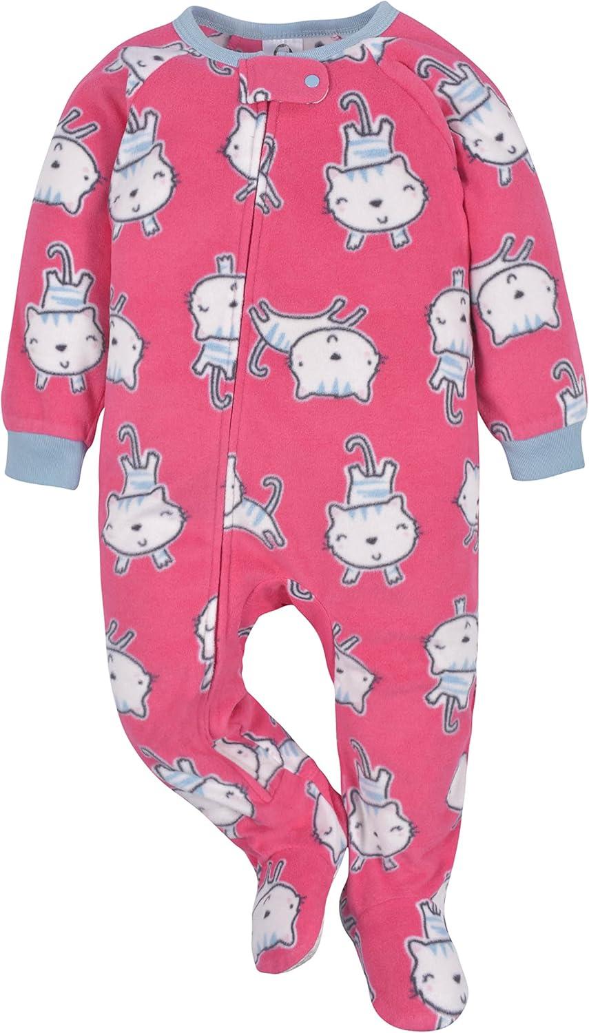 Gerber Baby Girls’ Toddler Loose Fit Flame Resistant Fleece Footed Pajamas 2-Pack(Tigers Pink)