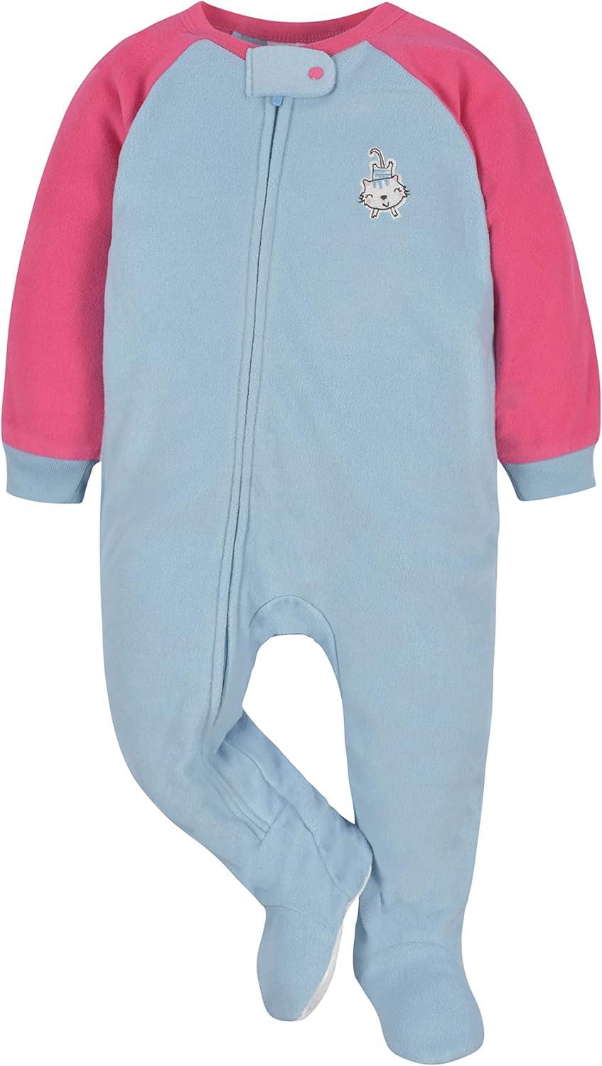 Gerber Baby Girls’ Toddler Loose Fit Flame Resistant Fleece Footed Pajamas 2-Pack(Blue/Pink Clouds)