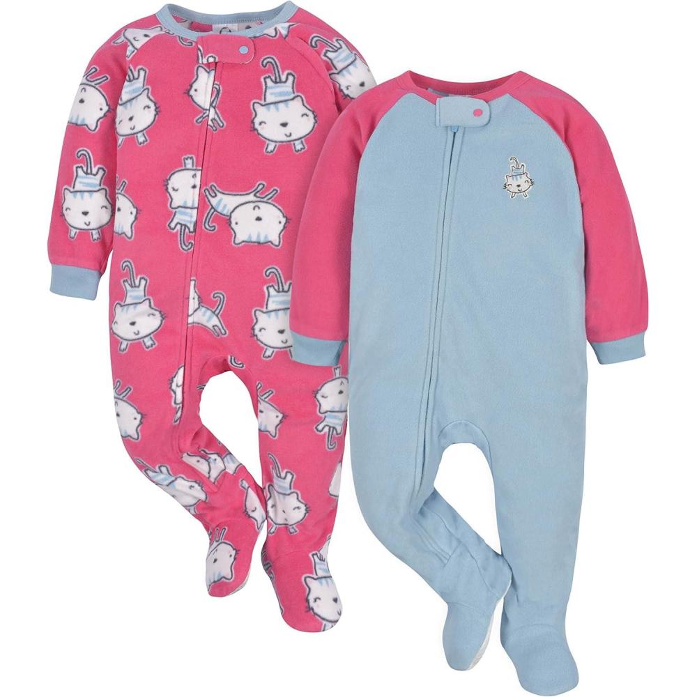 imageGerber Baby Girls Toddler Loose Fit Flame Resistant Fleece Footed Pajamas 2PackBluePink Clouds