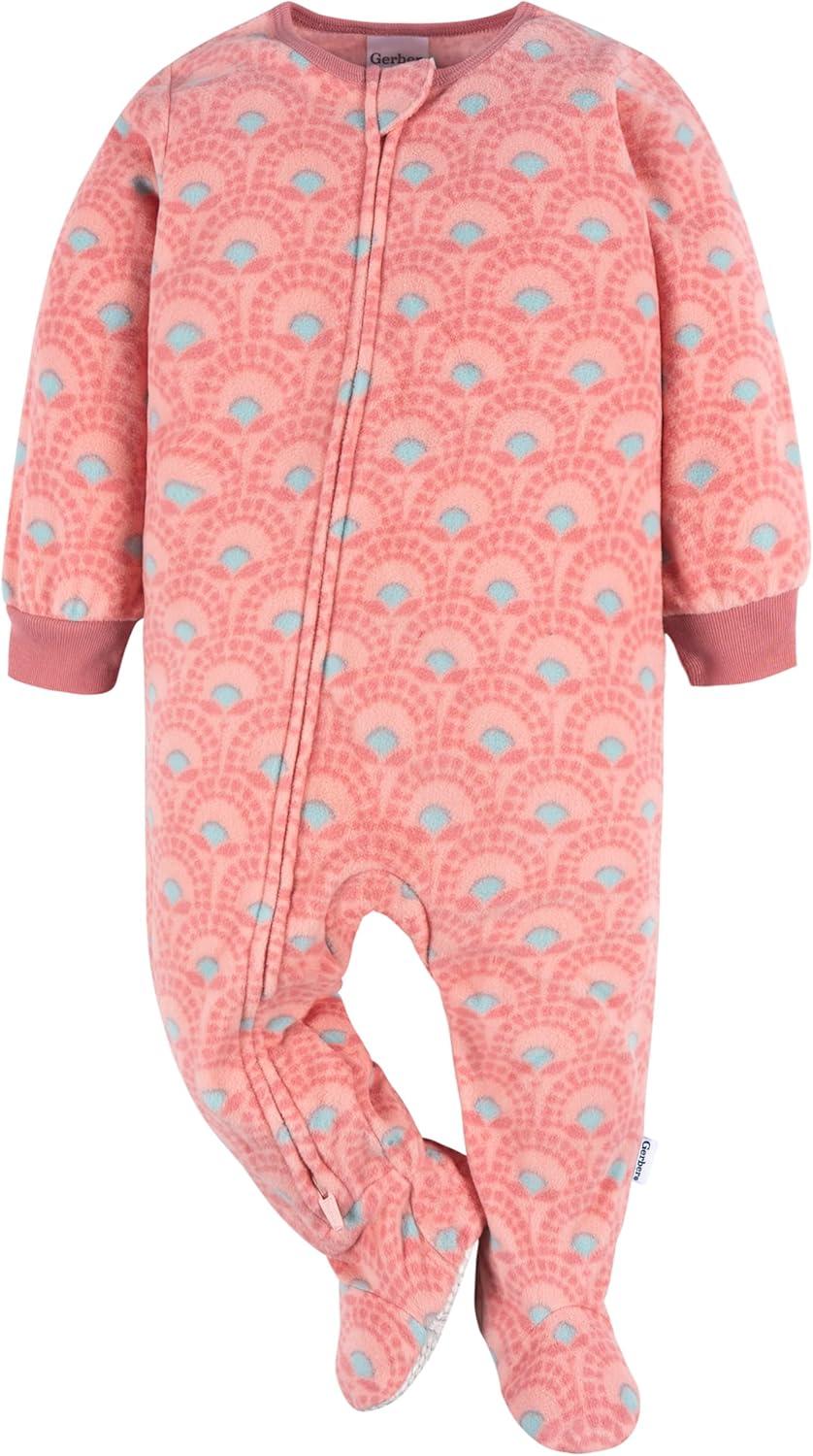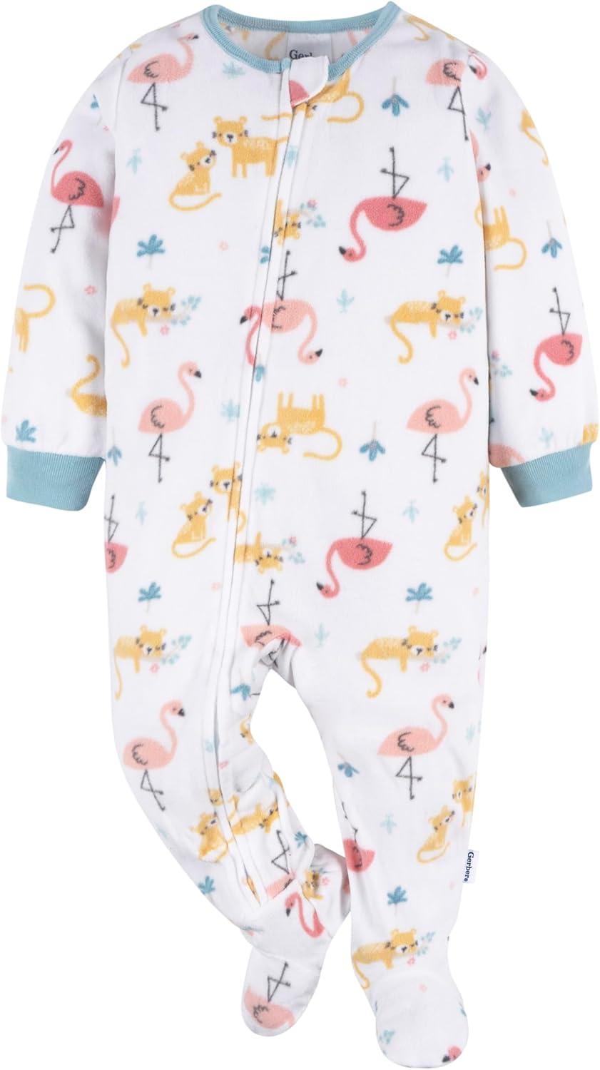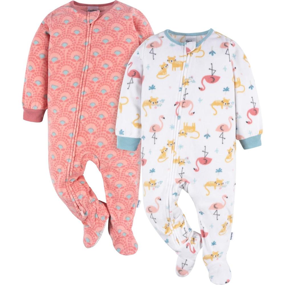 Gerber Baby Girls’ Toddler Loose Fit Fleece Footed Pajamas 2-Pack, Pink Flamingos, 12 Months