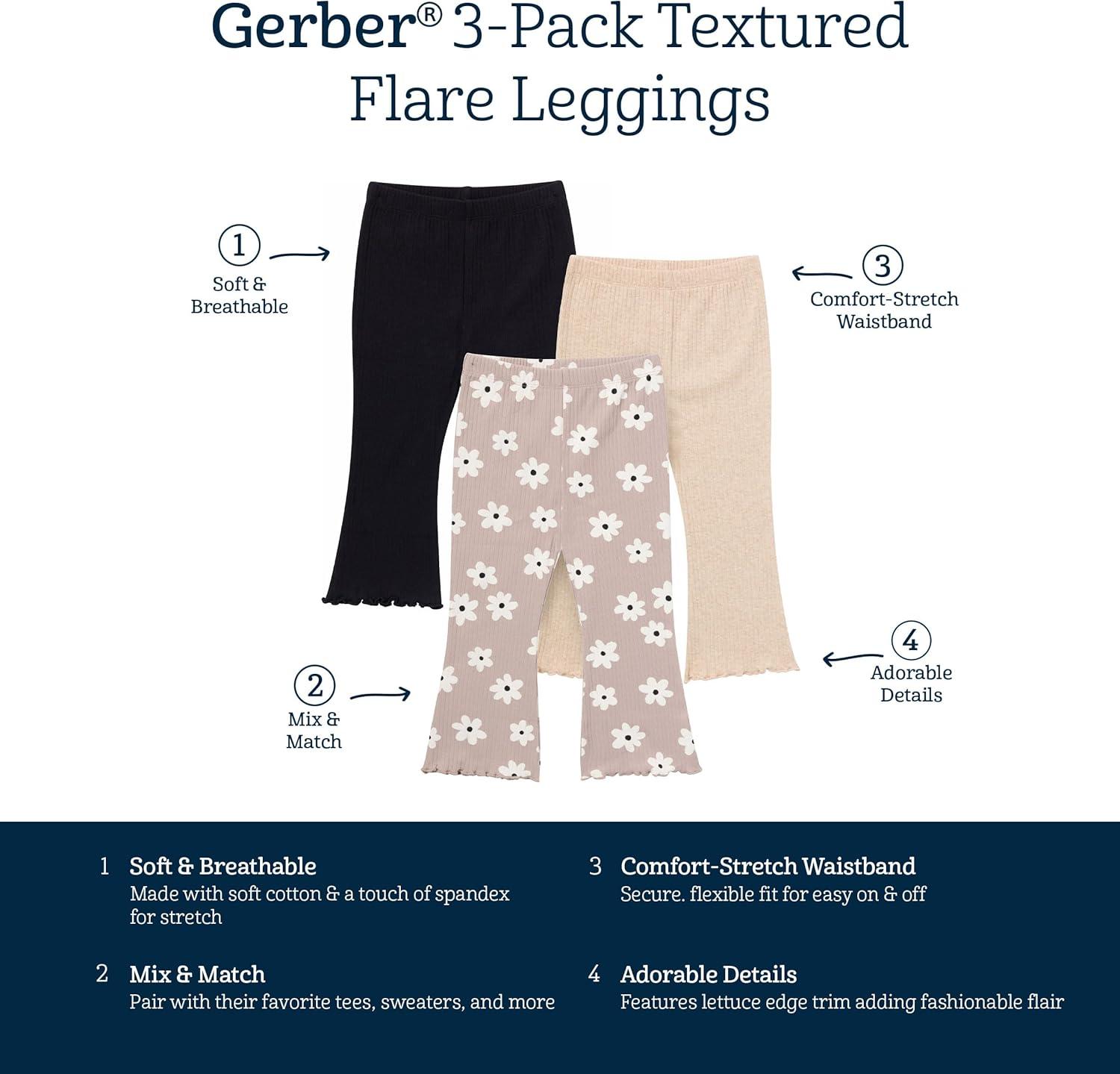 Gerber Baby Girls’ Toddler Multi-Pack Premium Leggings(Brown Flowers Oatmeal and Black)