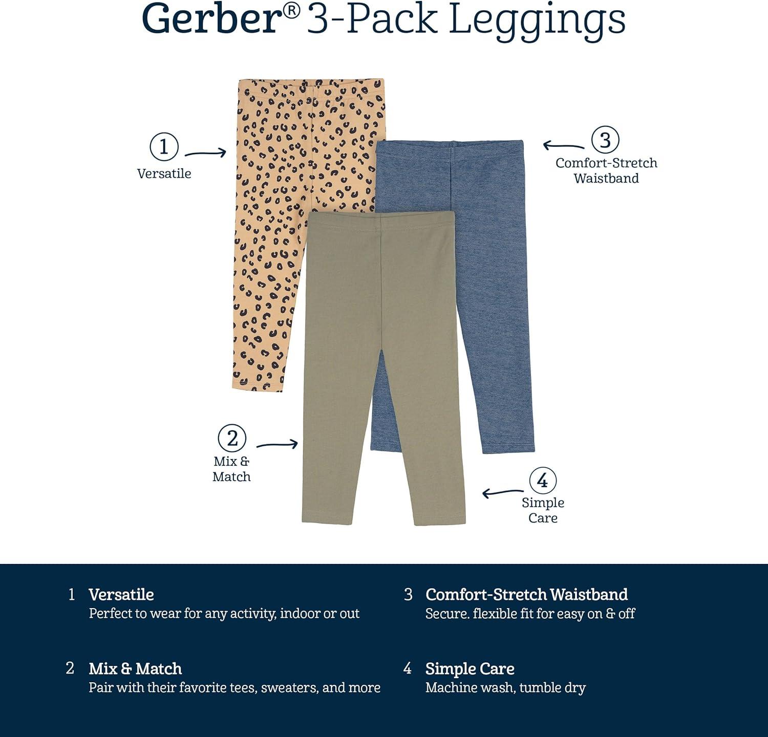Gerber Baby Girls’ Toddler Multi-Pack Premium Leggings(Green Leopard Print and Blue)