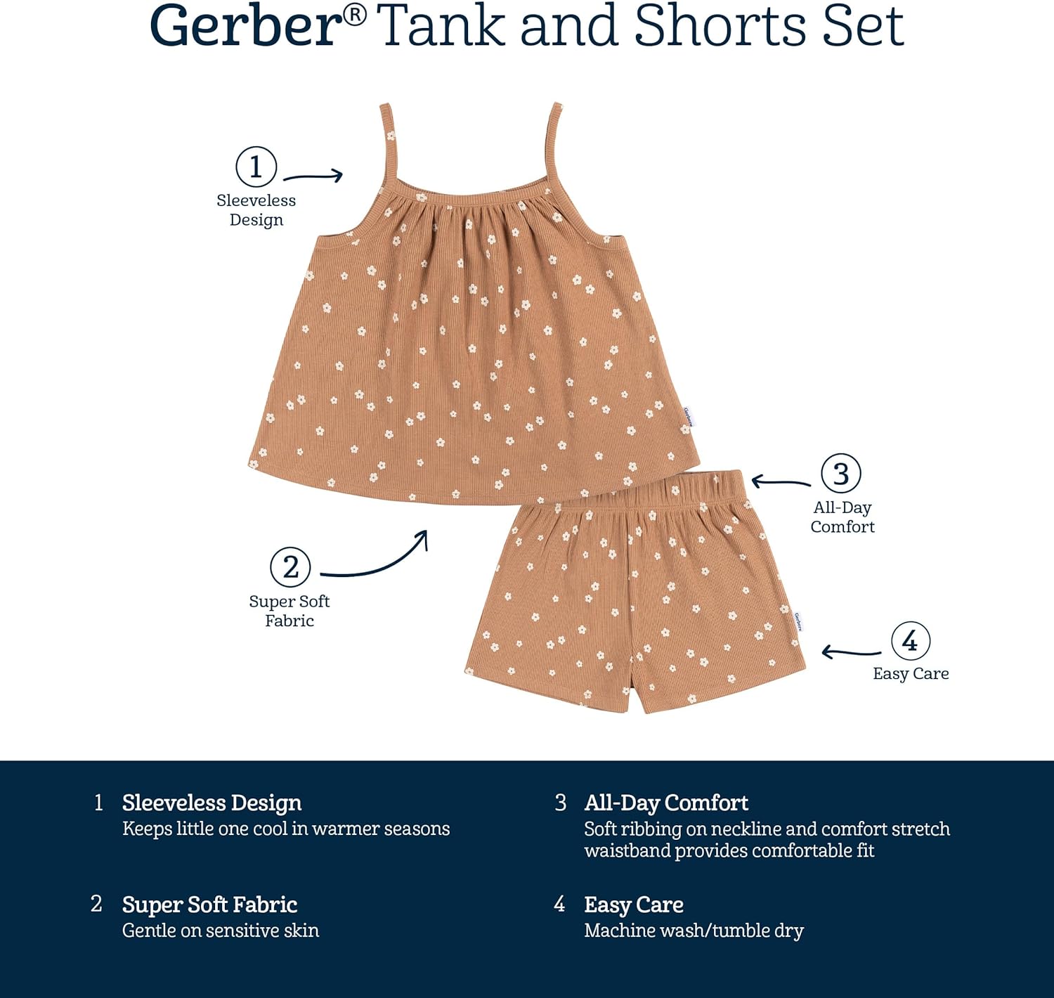 Say hello to a fresh, sunny-day look! This toddler girl outfit is the perfect pick for wearing all season long. Crafted from a blend of soft, stretchy fabrics, the matching sleeveless shirt and shorts ensure she stays cool and comfortable, even on the warmest days. The shorts feature a stretchy waistband for an easy fit, and a ribbed shirt neckline provides for her all-day comfort. And with stress-free machine washing, you can have this outfit clean and ready for a new day with ease.