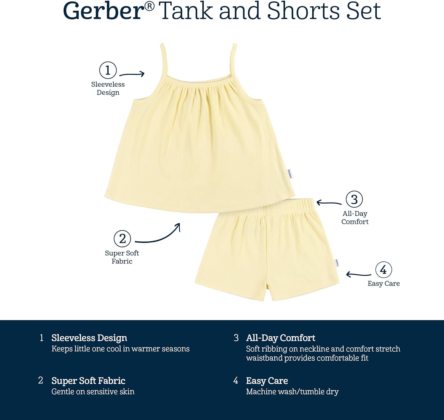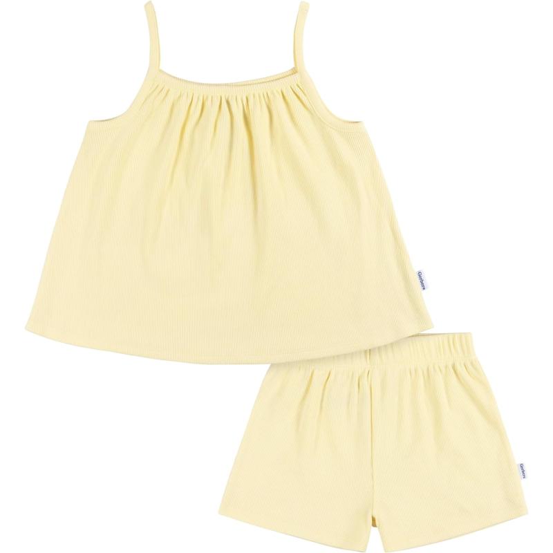 Say hello to a fresh, sunny-day look! This toddler girl outfit is the perfect pick for wearing all season long. Crafted from a blend of soft, stretchy fabrics, the matching sleeveless shirt and shorts ensure she stays cool and comfortable, even on the warmest days. The shorts feature a stretchy waistband for an easy fit, and a ribbed shirt neckline provides for her all-day comfort. And with stress-free machine washing, you can have this outfit clean and ready for a new day with ease.