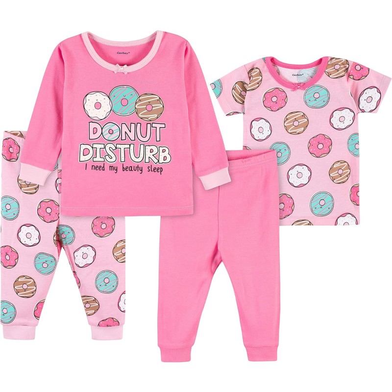 Gerber Baby Girls’ Toddler Snug Fit 4-Piece Pajama Set(Donuts)