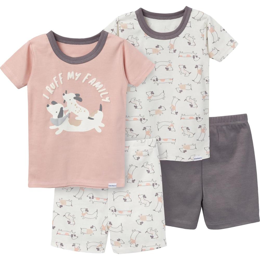 Gerber baby-girls Toddler Snug Fit 4-piece Pajama Set(Love Pink)