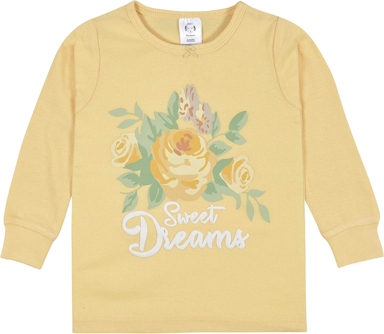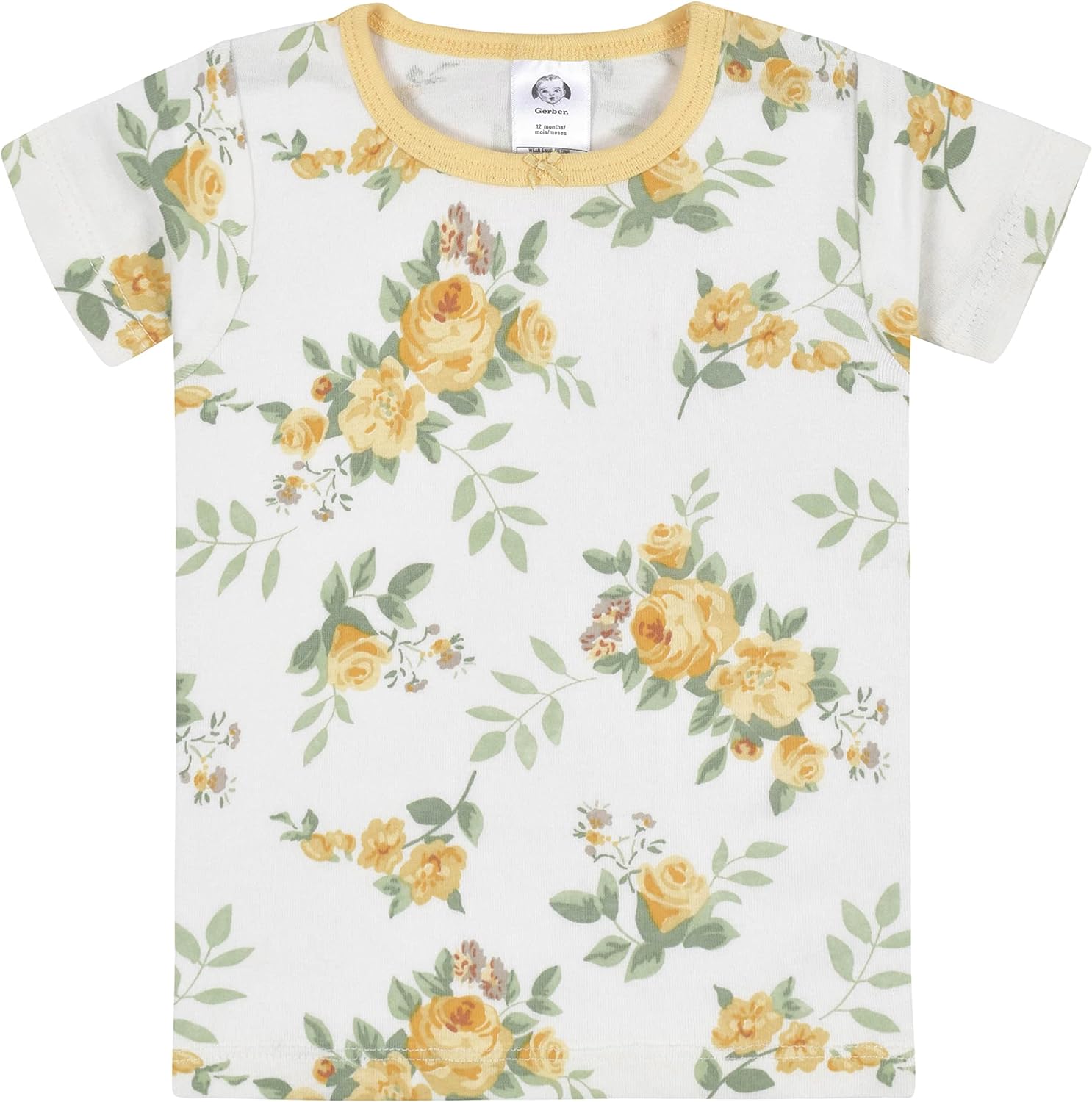 Gerber Baby Girls’ Toddler Snug Fit 4-Piece Pajama Set(Rose Garden Yellow)