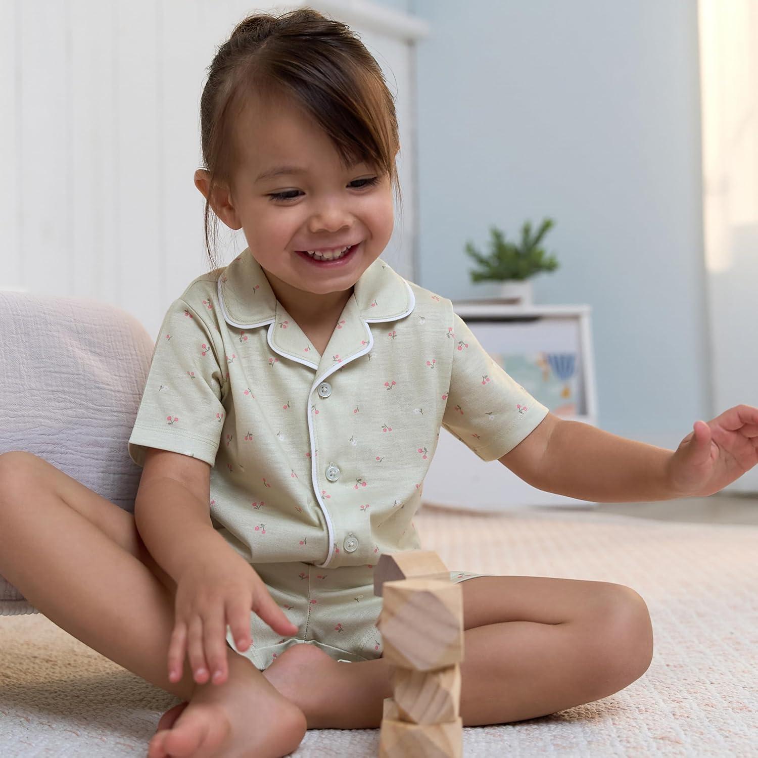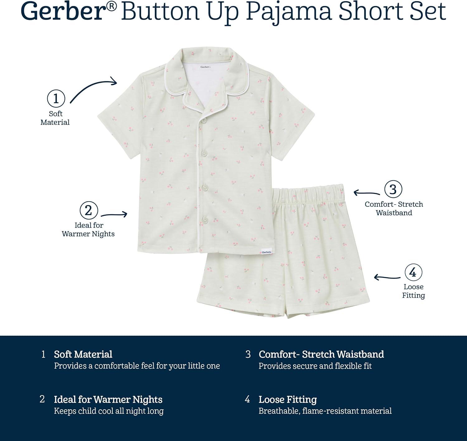 Gerber Baby Girls Toddlers and Baby Girls’ 2-Piece Coat Style Pajama Short Set(Cherries)