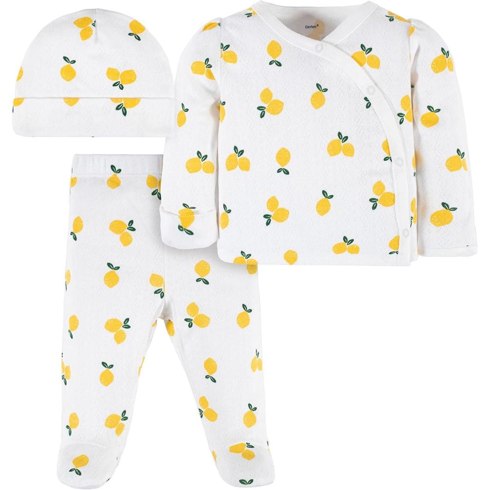 Gerber Unisex-Baby Newborn Hospital Pointelle Outfit Shirt, Footed Pant And Cap