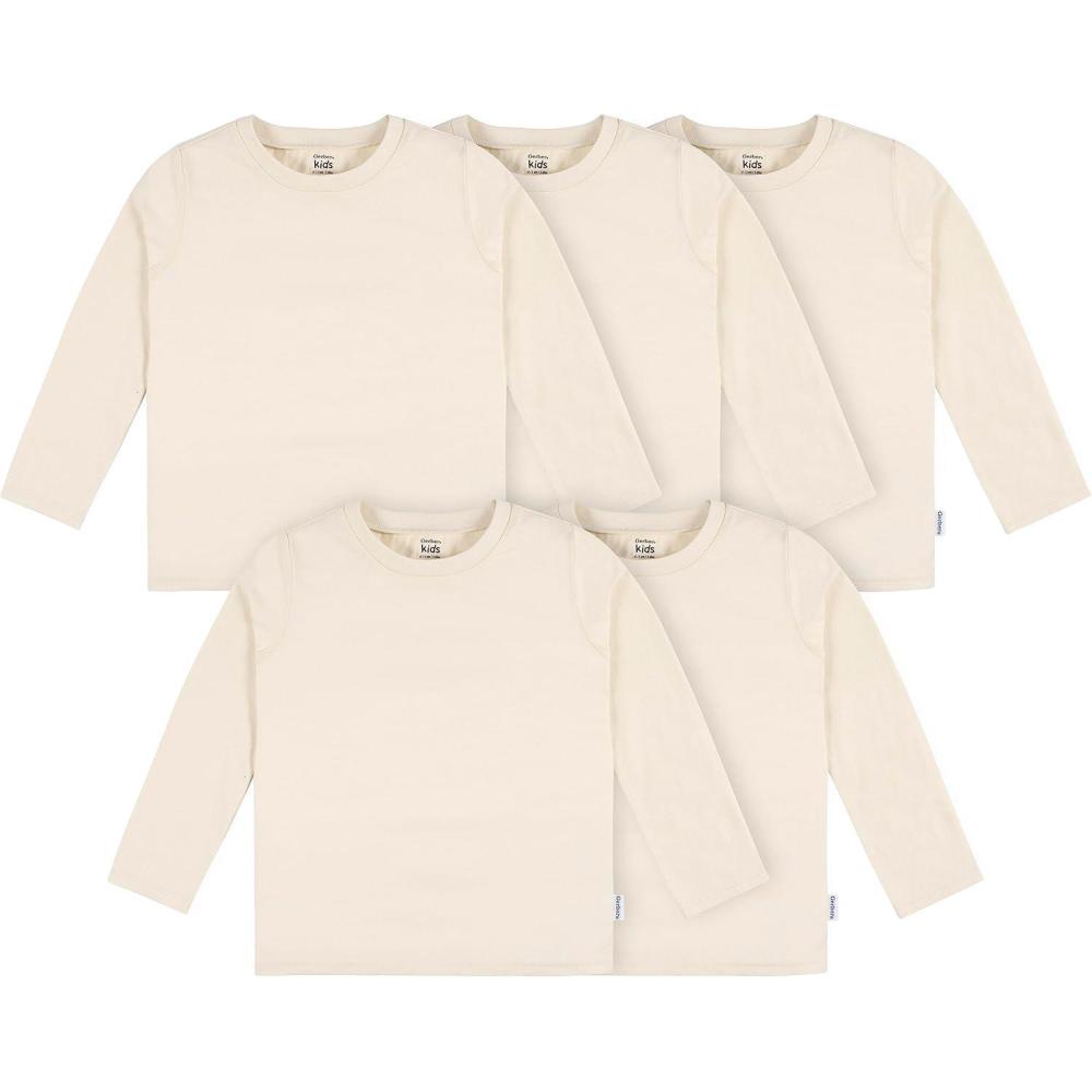 Cotton interlock is extremely soft, warmer than cotton rib, and holds the perfect amount of stretch, making it perfect for baby clothes. Our baby clothes are designed to keep your little one feeling at their best and to bring parents peace of mind. This pack of long sleeve t-shirts is the perfect addition to your little one's wardrobe and perfect for DIY crafting! Made primarily from cotton for a soft, breathable fit with spandex at the neck, wrist and waist for a gentle stretch and all day comfort. Use with additional layers on cooler days to keep your baby or toddler cozy in all weather. Care is hassle-free with easy machine washing and drying. This pack includes five t-shirts.
