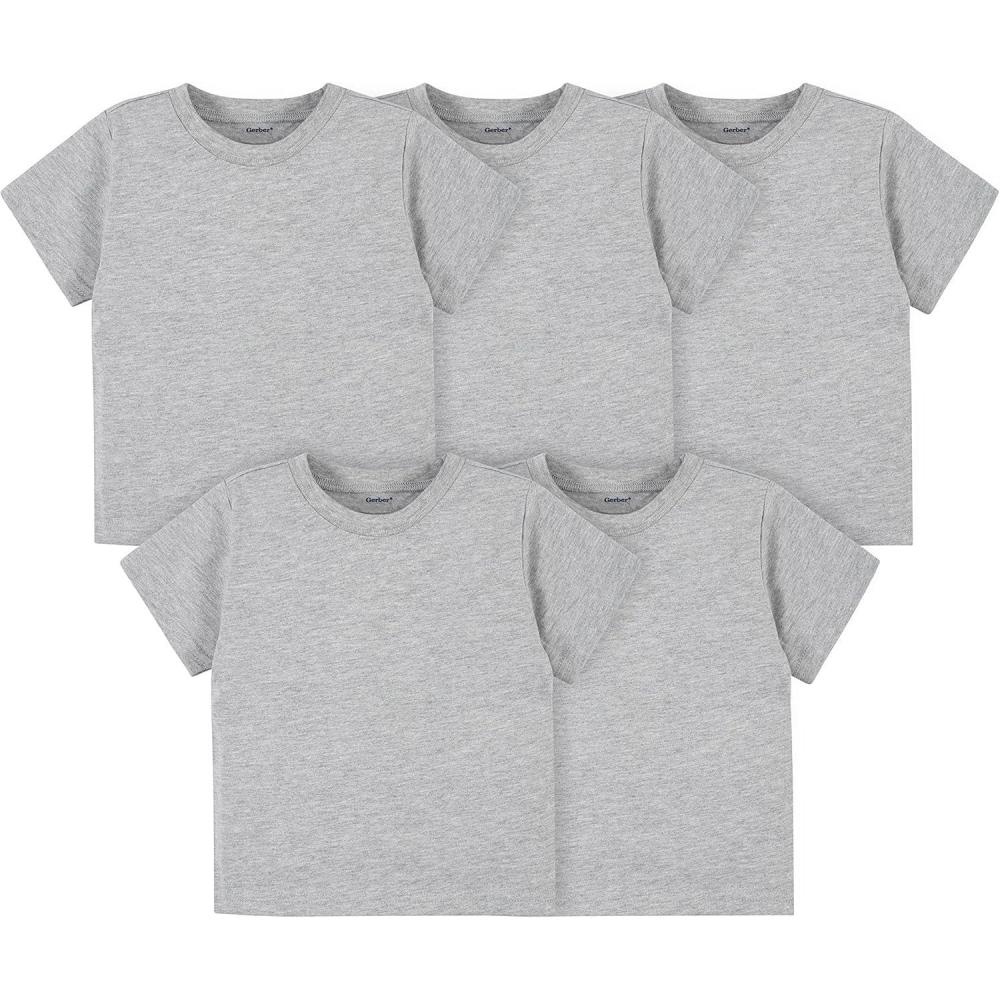 Gerber Baby Toddler 5-Pack Solid Short Sleeve T-Shirts Jersey 160 GSM(Heather Grey)