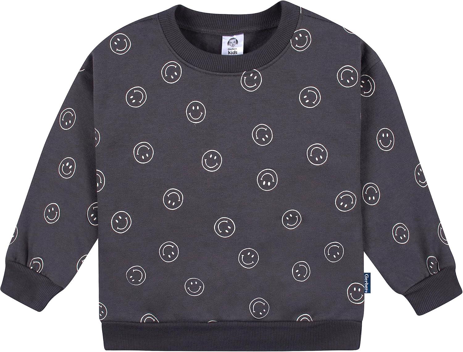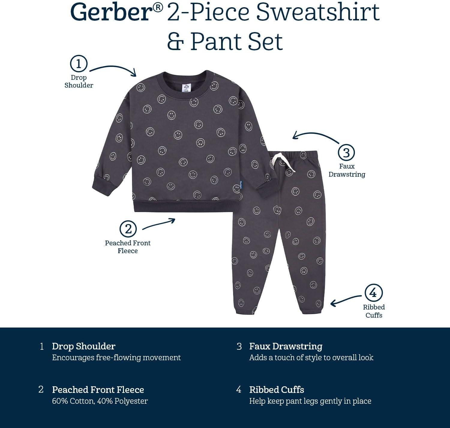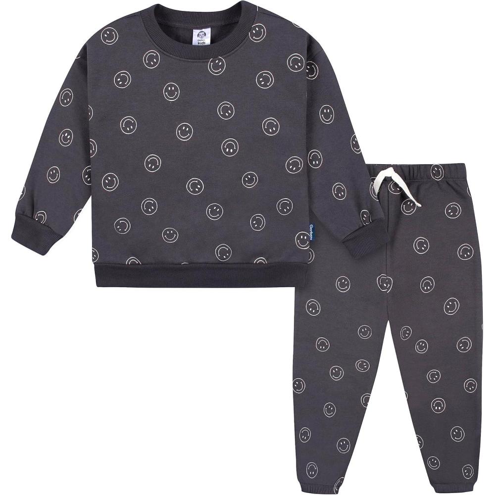 Gerber Baby & Toddler Boys’ 2-Piece Fleece Sweatshirt and Jogger Set(Charcoal Smiley)
