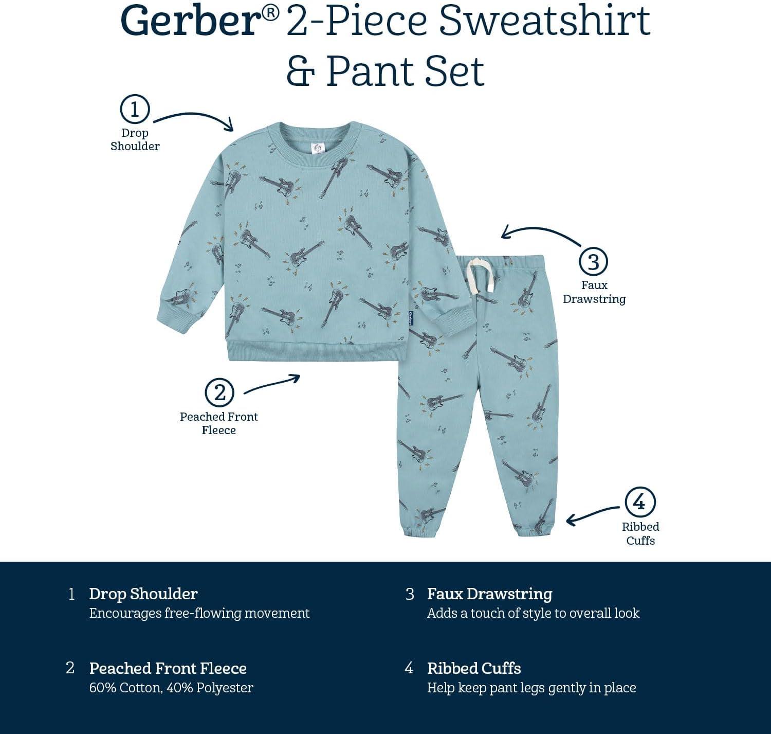 Gerber Baby & Toddler Boys’ 2-Piece Fleece Sweatshirt and Jogger Set(Teal Guitars)
