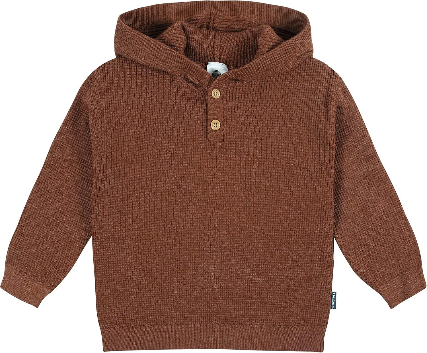 Keep your baby or toddler boy cozy and stylish in cool weather with this solid blue two-piece sweater knit set. Made from a super soft and comfy fabric with a cozy hoodie for extra warmth and comfort-stretch at the neck, wrists, waist, and ankles. Ideal for toddlers learning to dress themselves with an easy on-off design, the relaxed fit keeps them comfortable all day. The pullover top has two buttons enabling a loose or extra-cozy fit, and the pullup pants feature a stretchy waistband for maximum comfort. Faux wood buttons and a faux drawstring add an extra touch of style. This sweater knit set includes one top and one bottom.