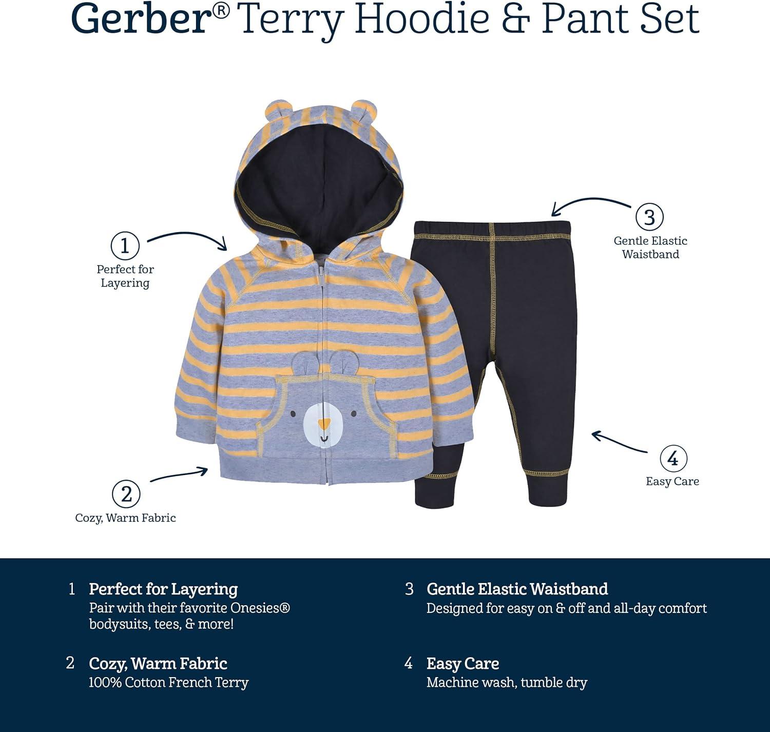 Gerber Baby & Toddler Boys’ Zip Hoodie and Jogger Clothing Set(Bear Grey)