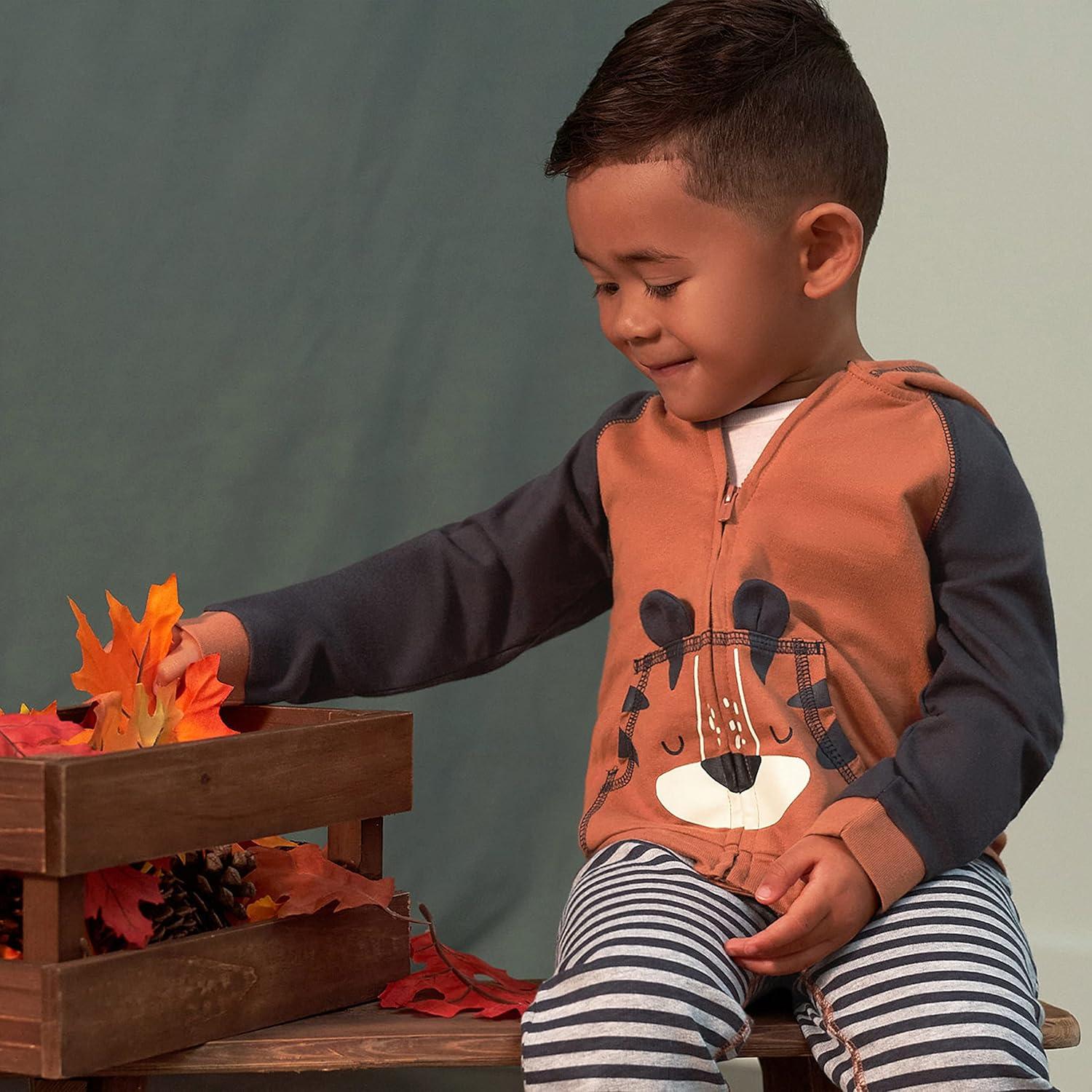 Gerber Baby & Toddler Boys’ Zip Hoodie and Jogger Clothing Set(Tiger Orange)